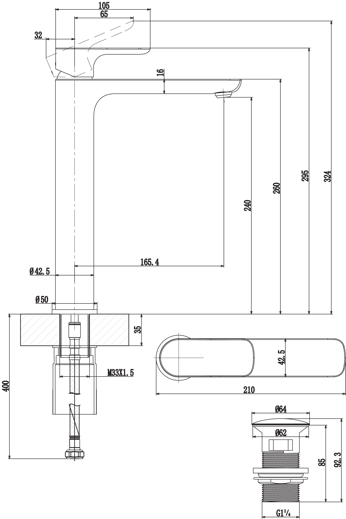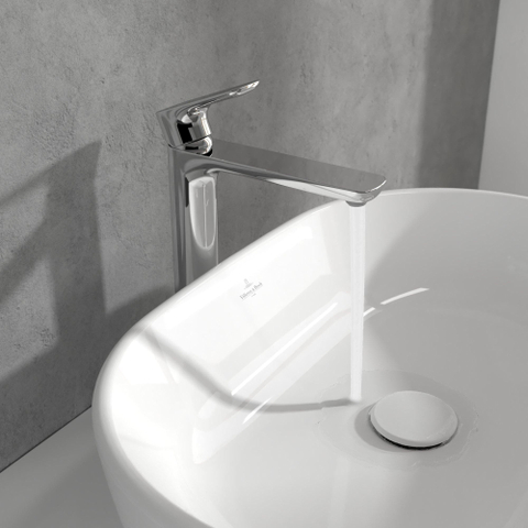 Villeroy & Boch O.novo ensemble de robinet à levier unique rehaussé avec bonde de vidage Push-Open - chrome