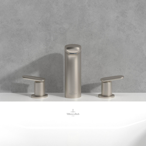Villeroy & Boch Antao Ensemble de robinet à 3 trous - avec bonde clic clac - Nickel brossé mat (inox)