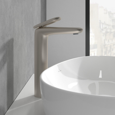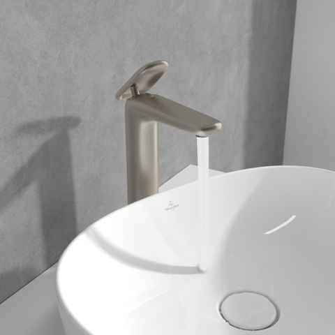 Villeroy & Boch Antao ensemble de robinet à une poignée - rehaussé - avec bonde clic clac - Nickel brossé (inox)