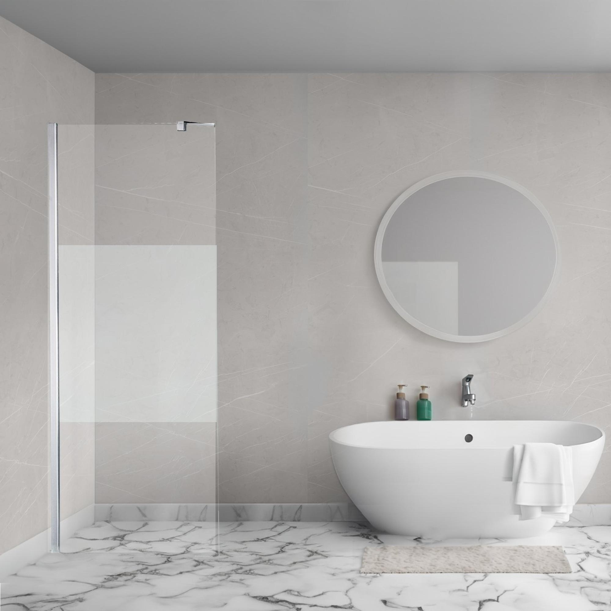- Construction de paroi fixe pour une douche à l'italienne avec une large entrée.