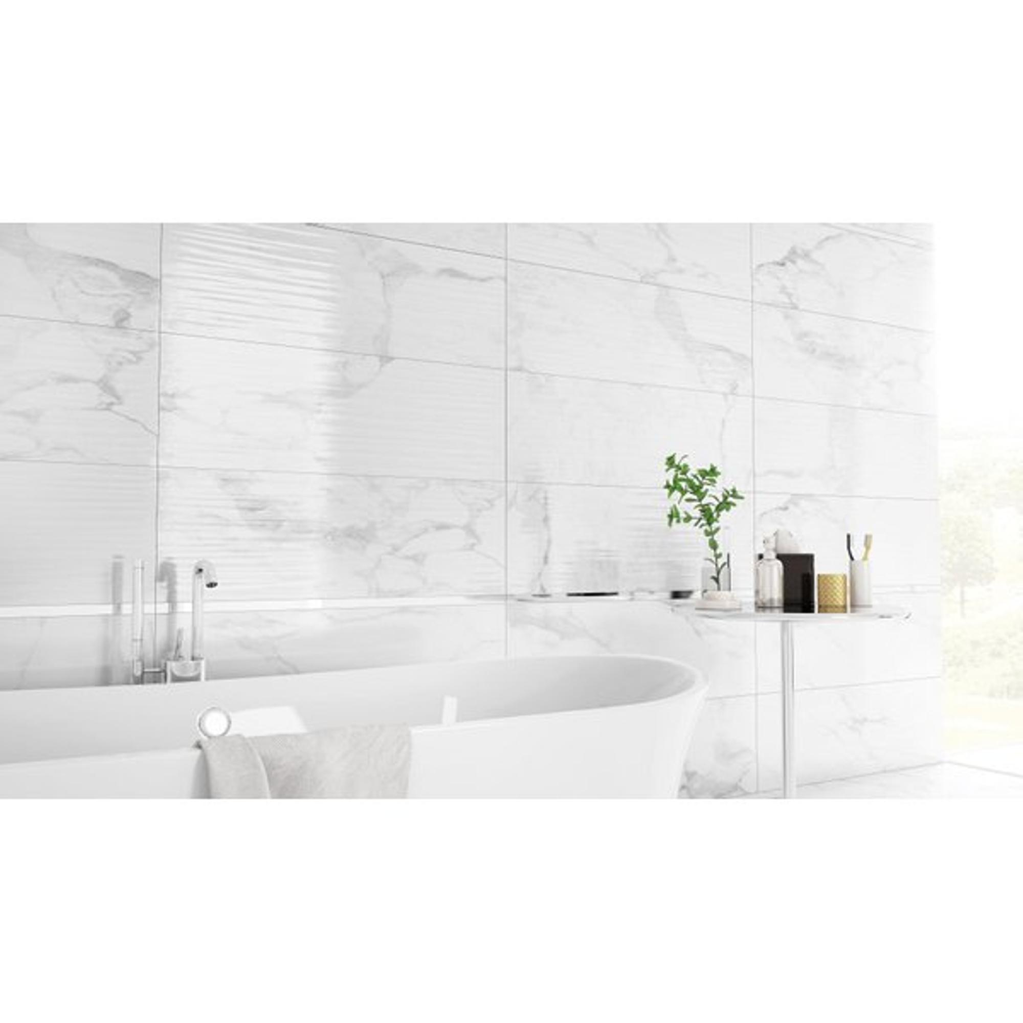 La structure de surface plane et la finition brillante rendent ce carrelage mural particulièrement facile d’entretien. La saleté et le calcaire adhèrent moins rapidement à la surface lisse, de sorte qu’avec un chiffon doux et un détergent sanitaire adapté, vous obtenez très vite un mur d’une propreté éclatante. Comme le carreau est fabriqué sur une pâte blanche, la base s’accorde parfaitement avec l’aspect marbre clair, ce qui, en particulier avec des joints fins, donne une impression encore plus soignée. L’épaisseur de 7,7 mm est idéale pour une pose murale : suffisamment robuste pour un résultat solide, mais pas inutilement lourde. Grâce à son utilisation comme carrelage purement mural, vous n’avez en outre pas à tenir compte de classes antidérapantes ou de charges lourdes, ce qui simplifie à nouveau le choix et la mise en œuvre.