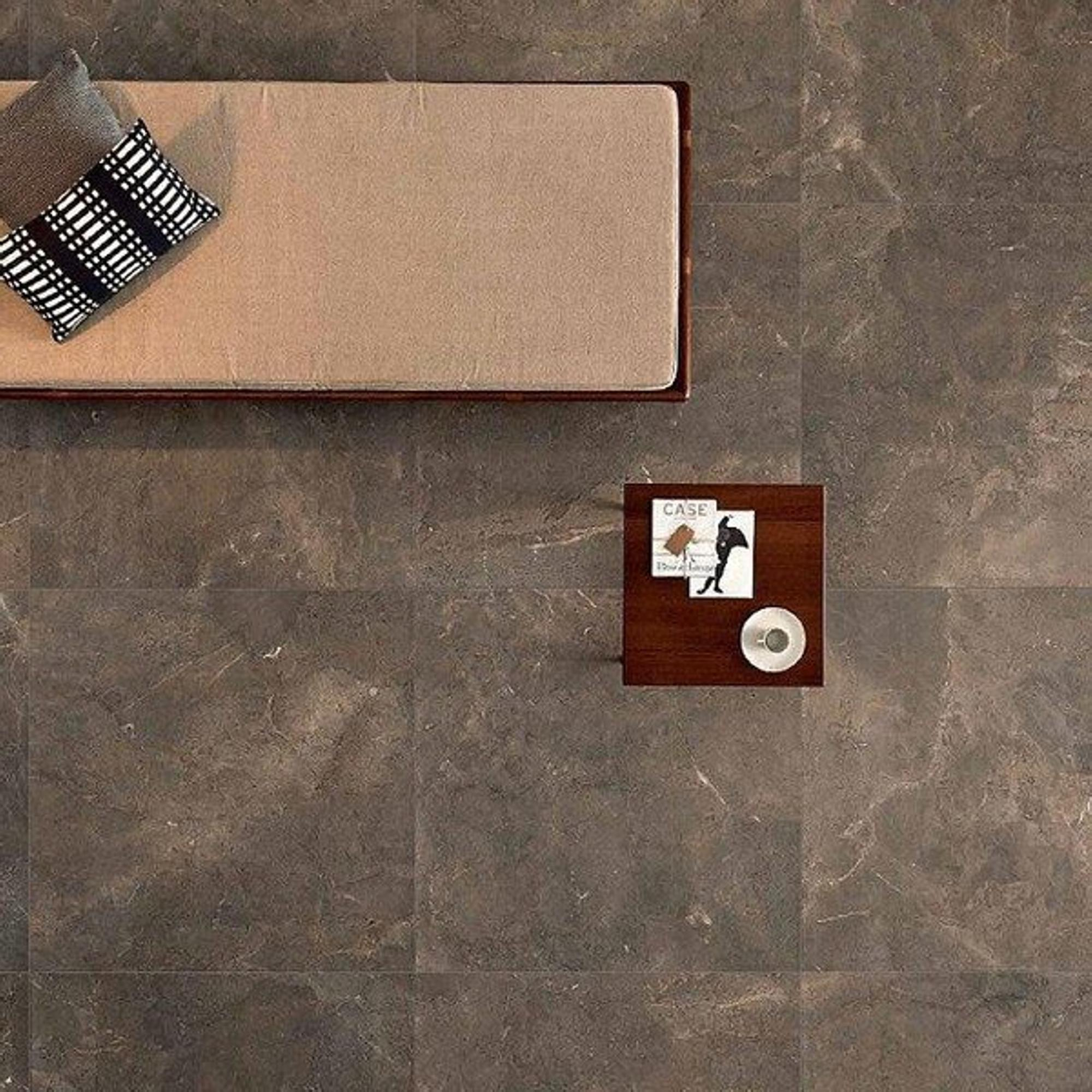 Le format carré XXL de 100x100 cm assure un calepinage épuré et calme, idéal si vous aimez une salle de bains moderne et minimaliste ou un espace de vie ouvert avec une allure luxueuse. Grâce aux grandes dalles, vous avez moins de joints, ce qui donne non seulement une impression d’espace, mais apporte également de la sérénité à votre intérieur. Surtout dans les petites salles de bains, un si grand format peut avoir un effet étonnamment spacieux, car les surfaces de sol et de mur semblent se prolonger visuellement. La couleur brune chaude Imperial Brown offre en même temps une base chaleureuse et accueillante qui se marie parfaitement avec le sanitaire blanc, les meubles aspect pierre naturelle ou aspect bois. Vous créez ainsi facilement un look haut de gamme, sans que la pièce ne paraisse froide ou impersonnelle.