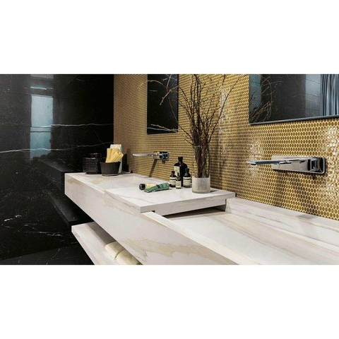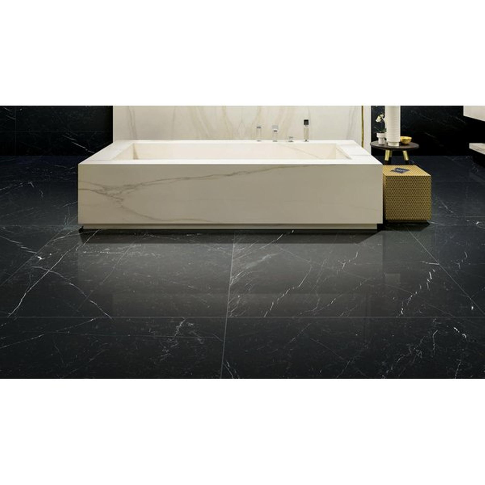 - Aspect marbre noir marquinia avec finition mate pour une apparence luxueuse et moderne.