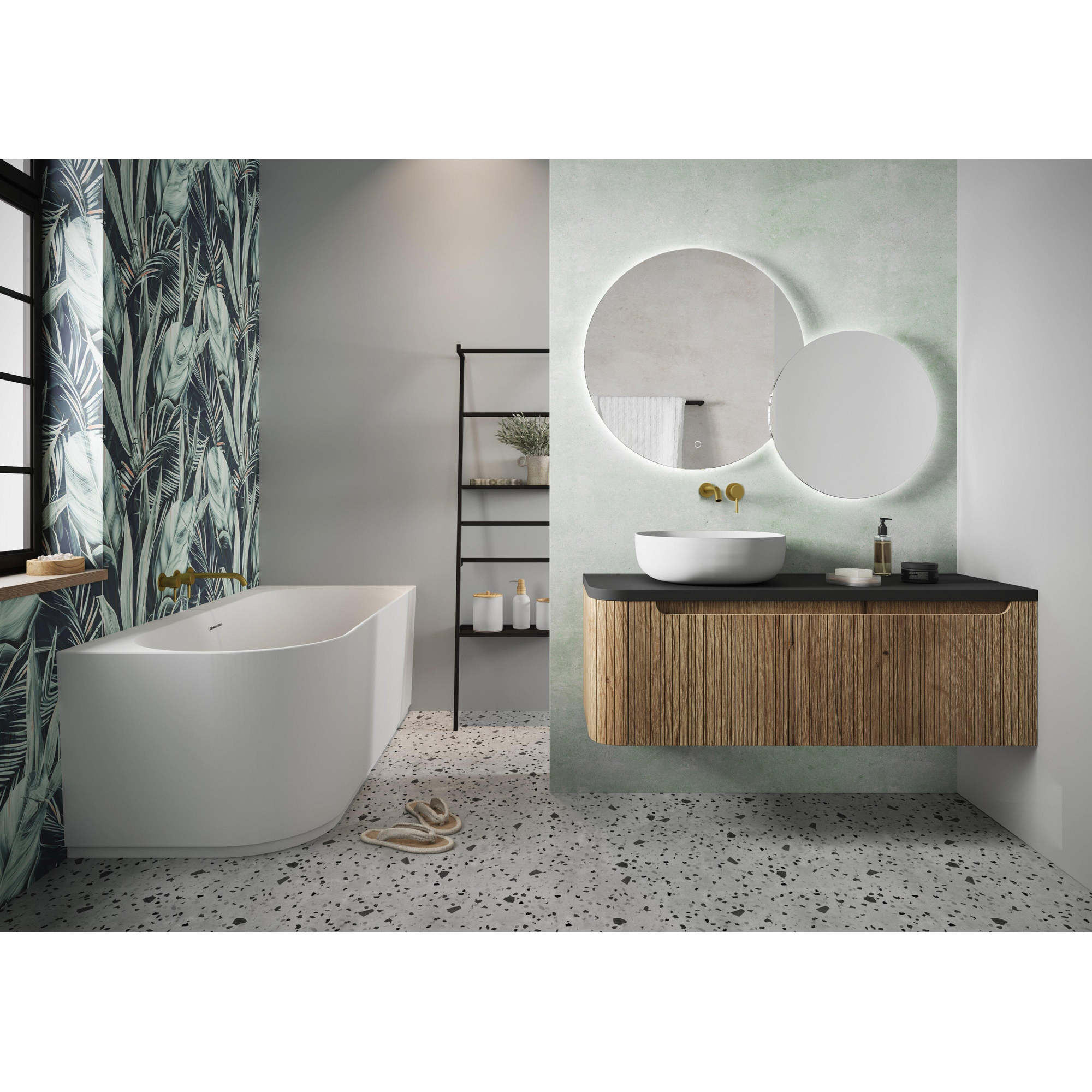 Le HR Meubles de Salle de Bain Duet-R miroir dégage élégance et style. Avec son design épuré et ses dimensions de 112x90cm, ce miroir s'intègre parfaitement au-dessus d'un lavabo ou d'un meuble de salle de bain. L'éclairage LED à intensité variable crée l'ambiance idéale dans chaque situation, tandis que les éléments de chauffage empêchent la formation de condensation sur le miroir, vous garantissant toujours une vue claire.