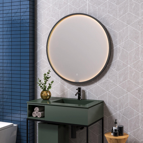 La forme ronde en combinaison avec le cadre fin noir mat assure un aspect moderne et pourtant intemporel. Cela fait de ce miroir un accord parfait avec les tendances de salle de bains populaires telles que les robinets noirs, les accents industriels ou les meubles minimalistes. Grâce au format de 60x60 cm, il trouve parfaitement sa place au-dessus d’un meuble simple avec lavabo, dans des toilettes ou comme élément d’accent dans une petite salle de bains. Le corps en aluminium contribue à une construction solide et durable, tandis que l’éclairage subtilement intégré confère à l’ensemble un effet luxueux, presque flottant contre le mur.