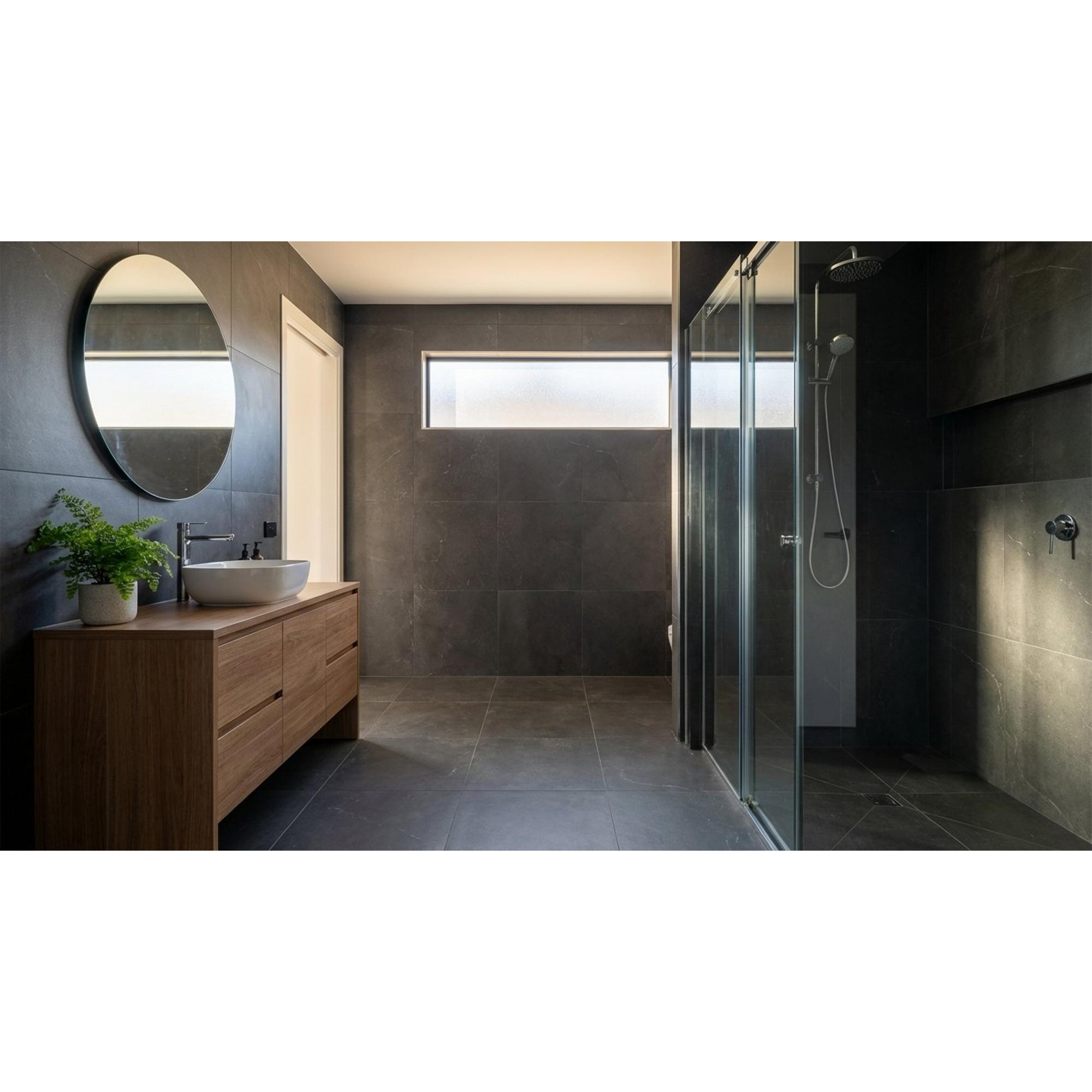 Le carrelage EnergieKer Hollstone dégage une beauté intemporelle qui transforme chaque espace. Le noir profond et la finition mate créent une atmosphère apaisante et ajoutent une touche de luxe. Les dimensions de 60x60cm procurent une sensation d'espace et rendent chaque pièce plus grande et plus lumineuse. Que vous ayez une décoration moderne ou classique, ce carrelage ajoute une touche d'élégance à chaque environnement.
