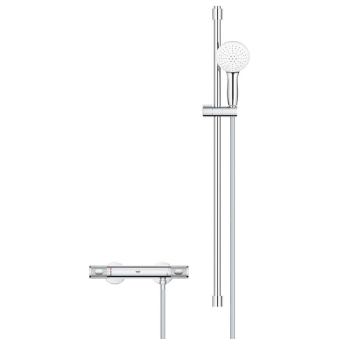 GROHE Grohtherm 1000 Performance Ensemble de douche - robinet de douche thermostatique - avec rosaces - avec ensemble de douche - 90cm - douchette ronde - 2 types de jets - flexible de douche lisse - chrome
