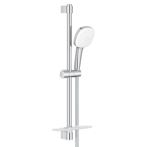 GROHE Tempesta 110 Cube Ensemble barre de douche - 60cm - douchette carrée - 2 jets - flexible de douche lisse - avec porte-savon - chromé