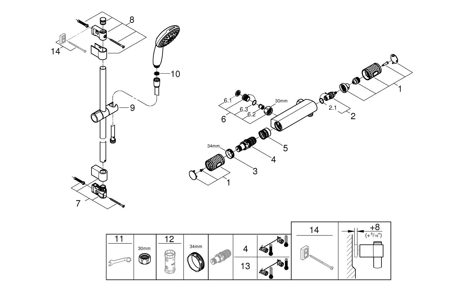 - Mitigeur de douche thermostatique avec technologie GROHE TurboStat pour une température d’eau constante