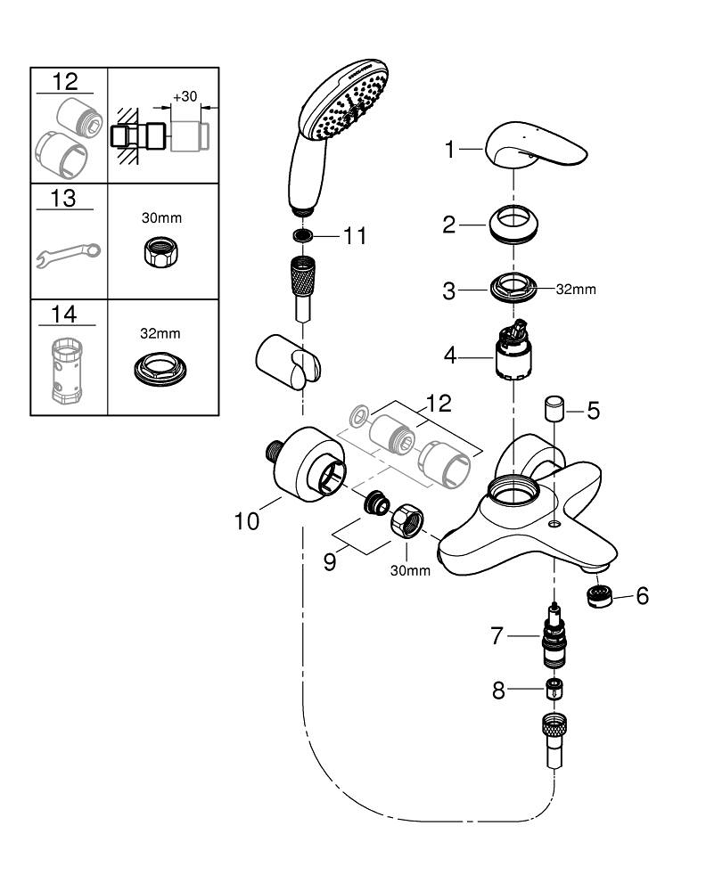 Grohe Eurostyle Mitigeur baignoire -avec douchette - inverseur - chrome
