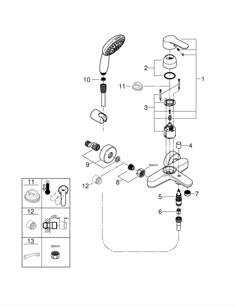 Grohe Eurostyle Cosmopolitan Mitigeur baignoire - avec douchette - inverseur - Chrome