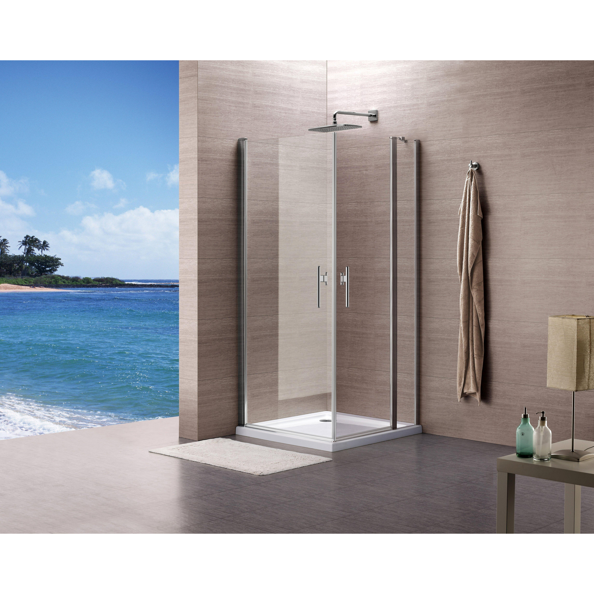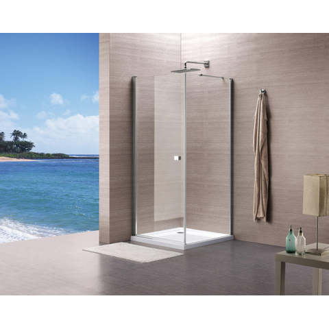 Royal Plaza Hendra Porte de douche pivotanmte - 120x195cm - paroi fixe - verre clair - clean - Chrome - DESTOCKAGE