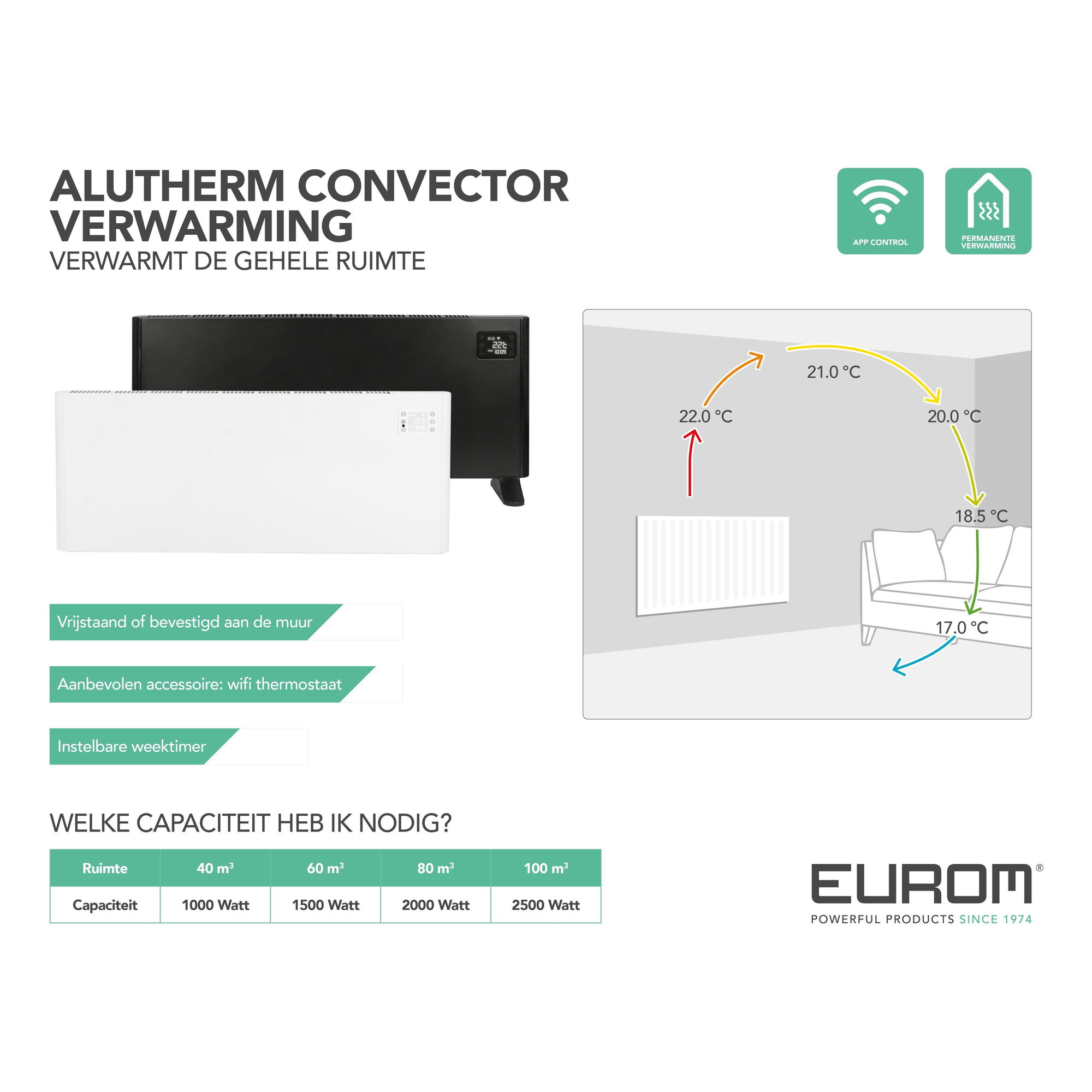 Eurom Alutherm 2000 Wifi Radiateur convecteur - Mural/Sur pied - 2000 watts - noir