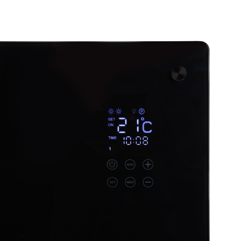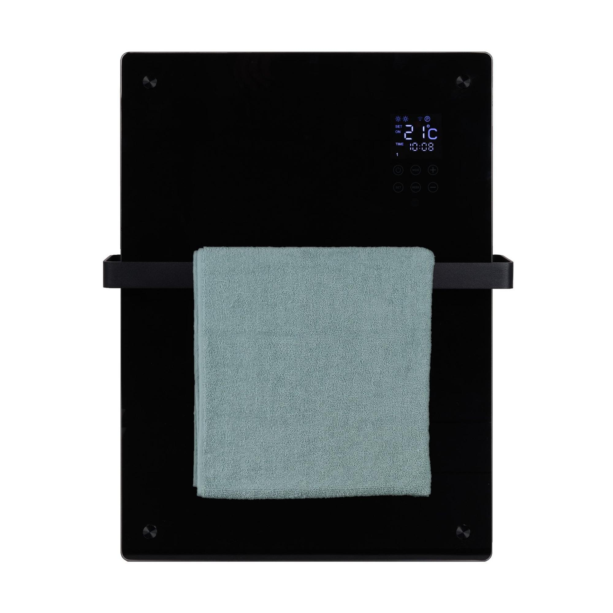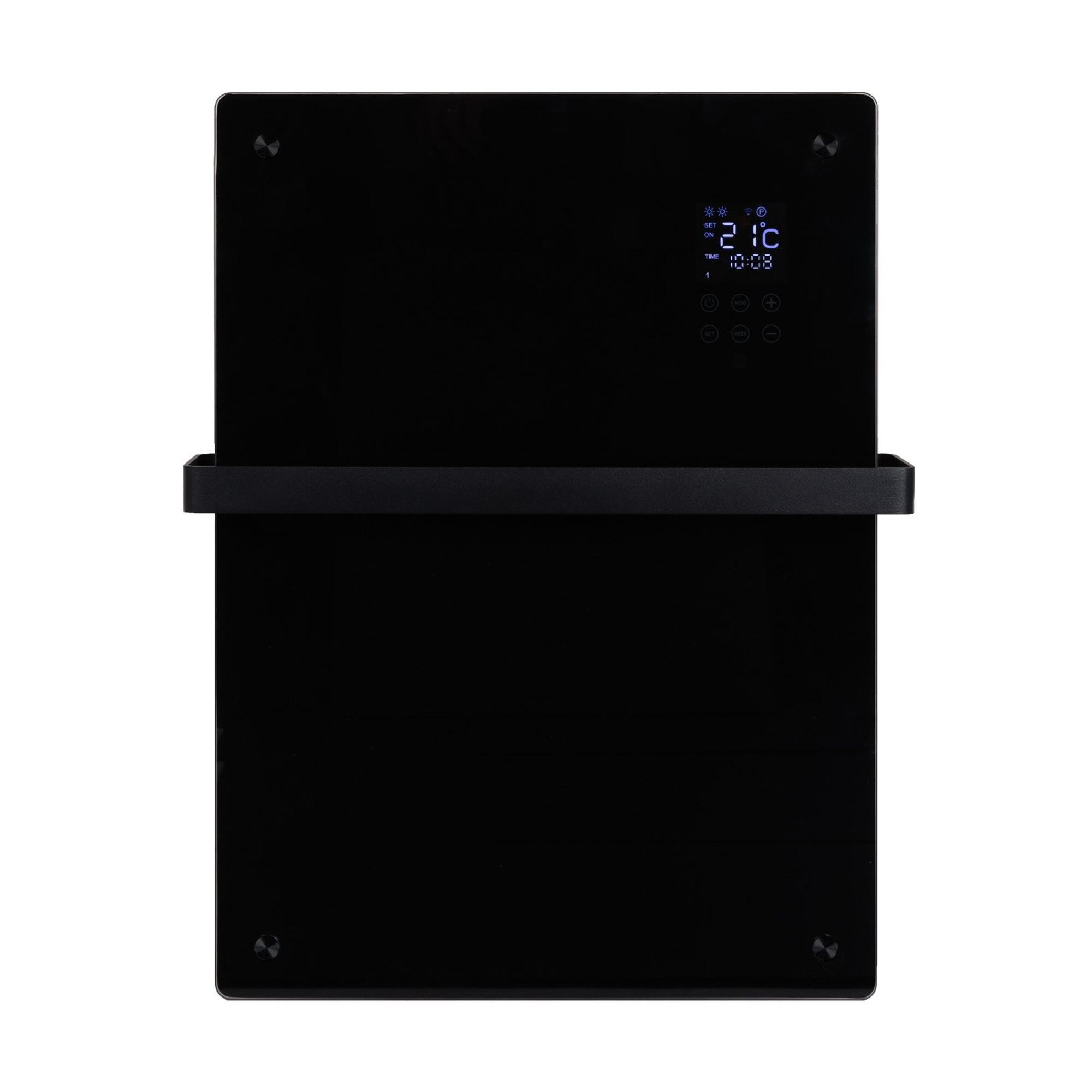 Eurom Alutherm Radiateur convecteur - 67.1x43.8cm - IP24 - 800watt - wifi - mural - Vertical - métal/verre noir mat