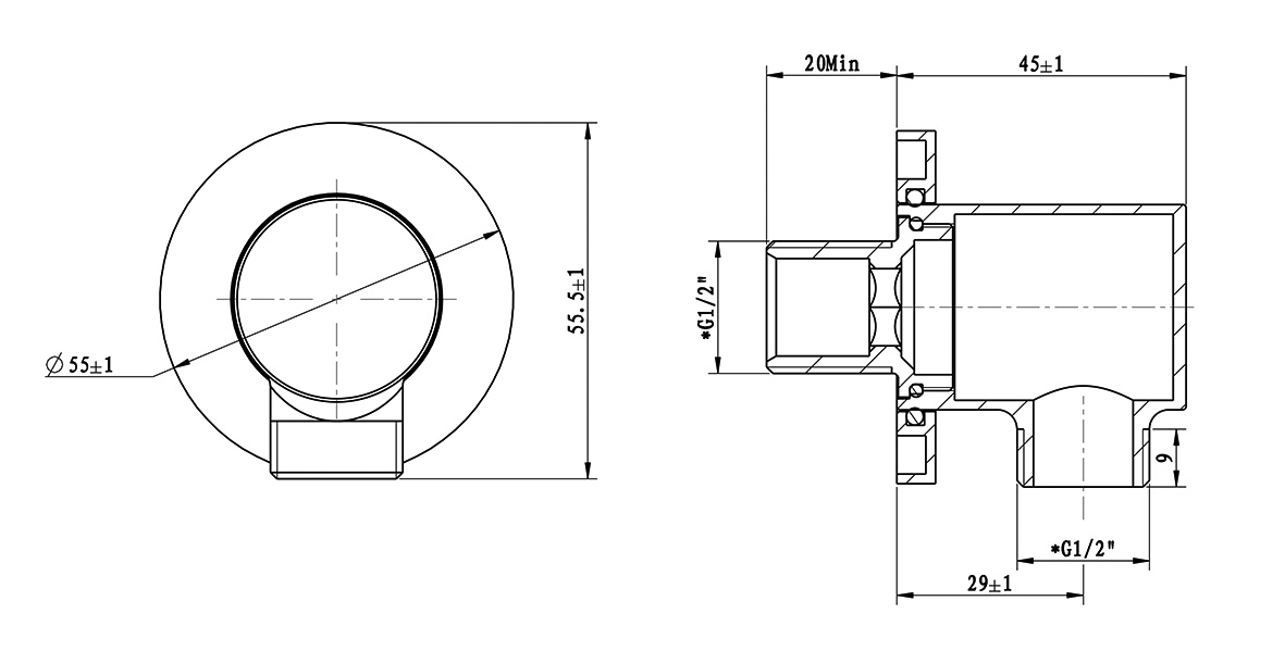 - Raccord rond 1/2", dimension standard pour les installations sanitaires