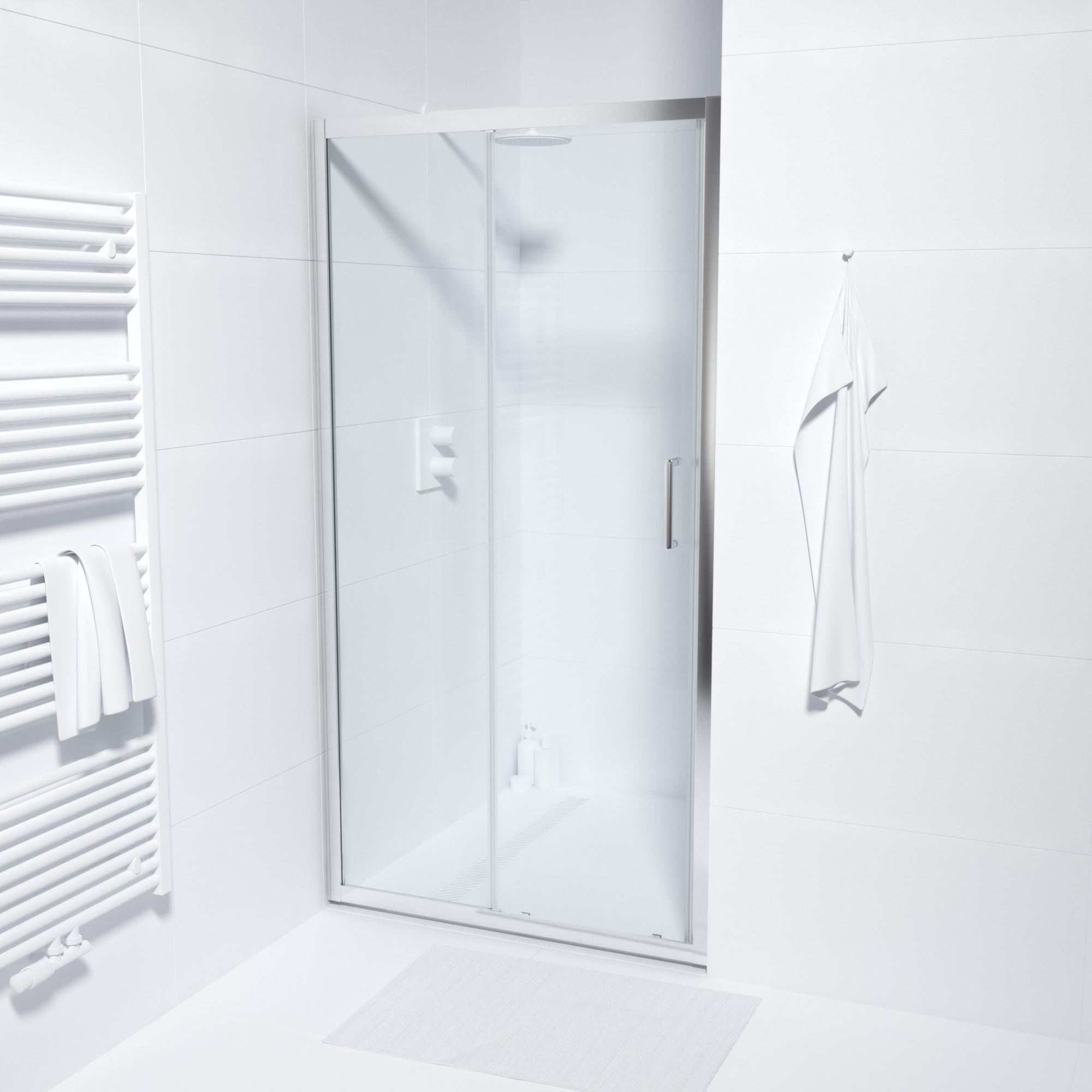 Porte mortier jointuresante Saniclass ID06 Quick Fit 100x190cm en verre de sécurité de 6mm, profil en aluminium anti-calcaire chromé