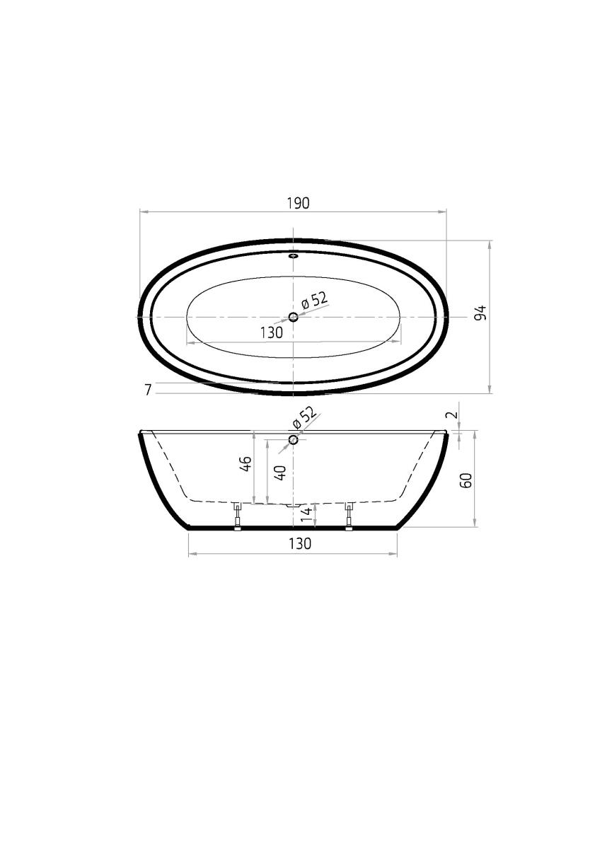 Xenz Britt vrijstaand bad - 190x94x60 - incl. sleuf overloop/afvoer - Acryl - wit glans