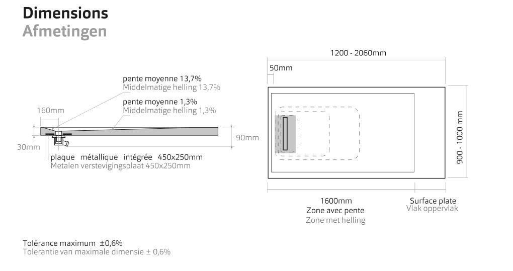 Xenz Soft douchevloer - 140x90x3 - balk afvoer rvs - wit mat