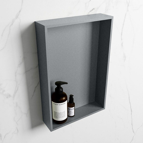 Les lignes fines et la forme rectangulaire assurent un look minimaliste qui convient parfaitement aux salles de bains contemporaines. Grâce à la teinte grise douce, la niche devient un détail subtil qui met en valeur le reste de votre intérieur au lieu d’entrer en concurrence avec celui-ci. Associez-la par exemple à des robinets noirs mats ou à des accents en inox pour un ensemble robuste et industriel, ou au contraire à des tons bois chauds pour une atmosphère chic façon hôtel. La dimension fixe d’environ 45 x 30 cm facilite en outre l’alignement harmonieux de la niche avec votre motif de carrelage, de sorte que l’ensemble paraisse visuellement calme et bien pensé.