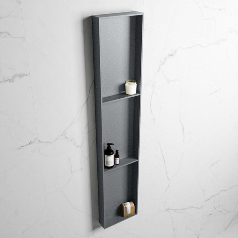 Avec cette niche spacieuse, vous créez en une seule fois un espace de rangement supplémentaire et un look épuré dans votre salle de bains. Grâce à sa forme allongée, elle est idéale à côté ou dans la douche, au-dessus de la baignoire ou comme élément accrocheur élégant dans une douche à l’italienne moderne. Les trois compartiments ouverts offrent de la place pour les flacons de shampoing, les produits de soin et les beaux accessoires, tandis que la teinte grise sobre se combine parfaitement avec quasiment tous les carrelages ou combinaisons de couleurs. Comme vous pouvez choisir entre encastré et en saillie, c’est un choix astucieux aussi bien pour une rénovation complète que pour une petite modernisation, par exemple si vous ne souhaitez pas ouvrir complètement les cloisons existantes. Vous ajoutez ainsi un espace de rangement pratique sans étagères séparées ni paniers visuellement chargés, et vous gardez votre salle de bains calme, aérée et bien ordonnée.