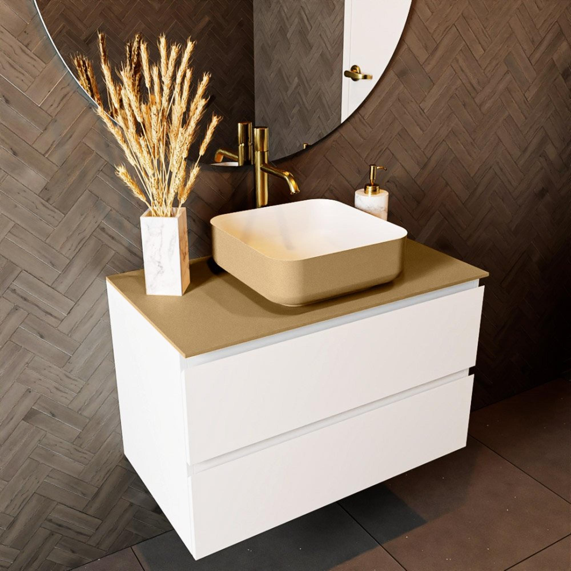 Avec ce plan vasque compact et épuré, vous créez en une seule fois une base calme et luxueuse dans la salle de bains. Grâce à ses dimensions de 80x46 cm, il est idéal pour les salles de bains petites à moyennes, les toilettes ou comme plateau élégant au-dessus d’un meuble sur mesure. L’exécution plane, sans trous de robinetterie ni lavabo, vous offre une liberté maximale dans l’agencement : combinez-le avec une vasque à poser, utilisez-le comme plaque de recouvrement ou comme tablette épurée pour les accessoires. La teinte dorée chaleureuse s’intègre parfaitement aux salles de bains modernes, hôtel chic et design, mais peut aussi constituer un accent intéressant dans un intérieur minimaliste. Si vous recherchez un plateau qui n’est pas seulement esthétique, mais aussi pratique et durable à l’usage quotidien, il s’agit alors d’un choix judicieux et pérenne.