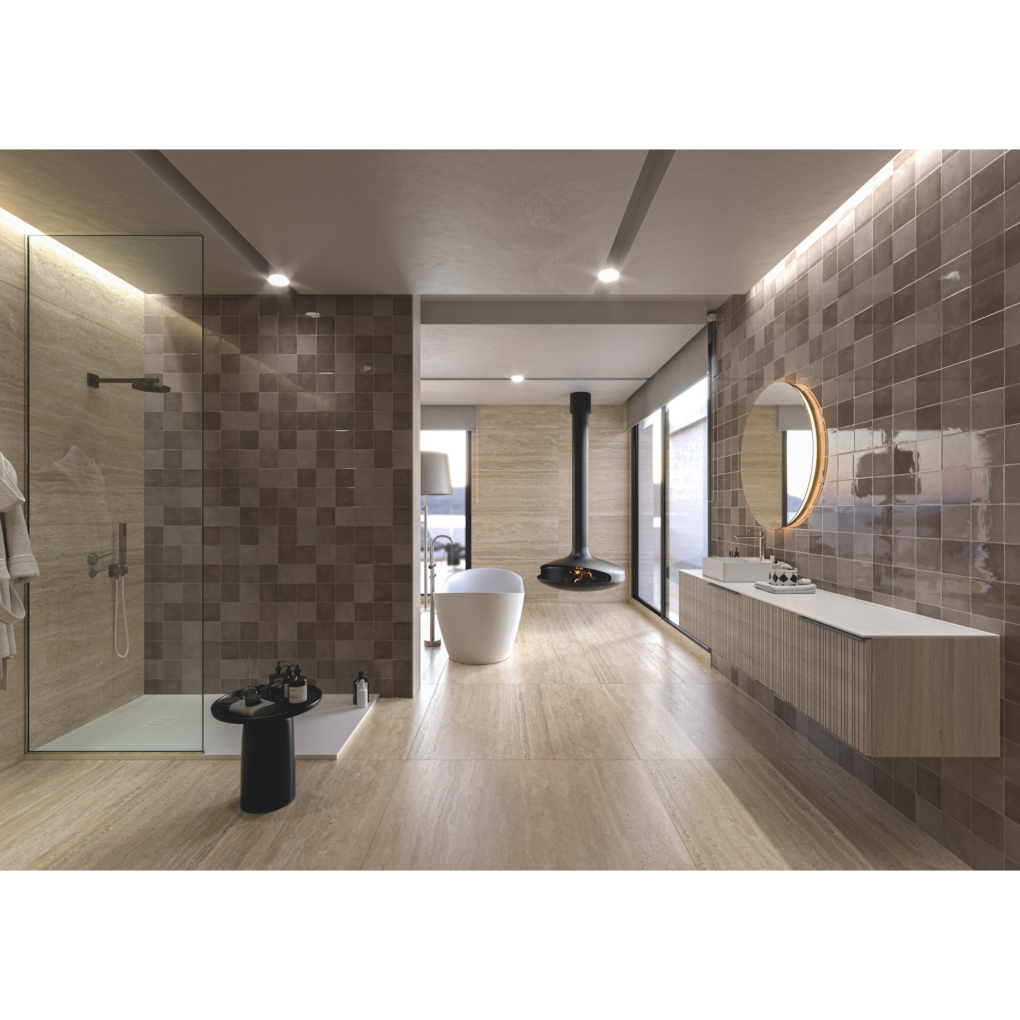 La finition faite main apporte juste ce petit plus de caractère. Pas de mur strict et clinique, mais un jeu vivant de lumière, de brillance et de petites nuances dans la forme. La couche supérieure brillante reflète la lumière en douceur, ce qui fait paraître votre salle de bains optiquement plus grande et plus lumineuse. C’est un grand avantage, surtout dans les petits espaces. La teinte taupe constitue une base chaleureuse qui ne lasse pas rapidement et se combine facilement avec d’autres couleurs de carreaux ou d’accessoires. Vous pouvez par exemple créer un mur d’accent dans la douche, tandis que le reste de la pièce reste calme. Le résultat : une salle de bains élégante et personnelle qui donne l’impression d’un hôtel, mais tout simplement chez vous.Pratique à l’usage et facile à entretenir