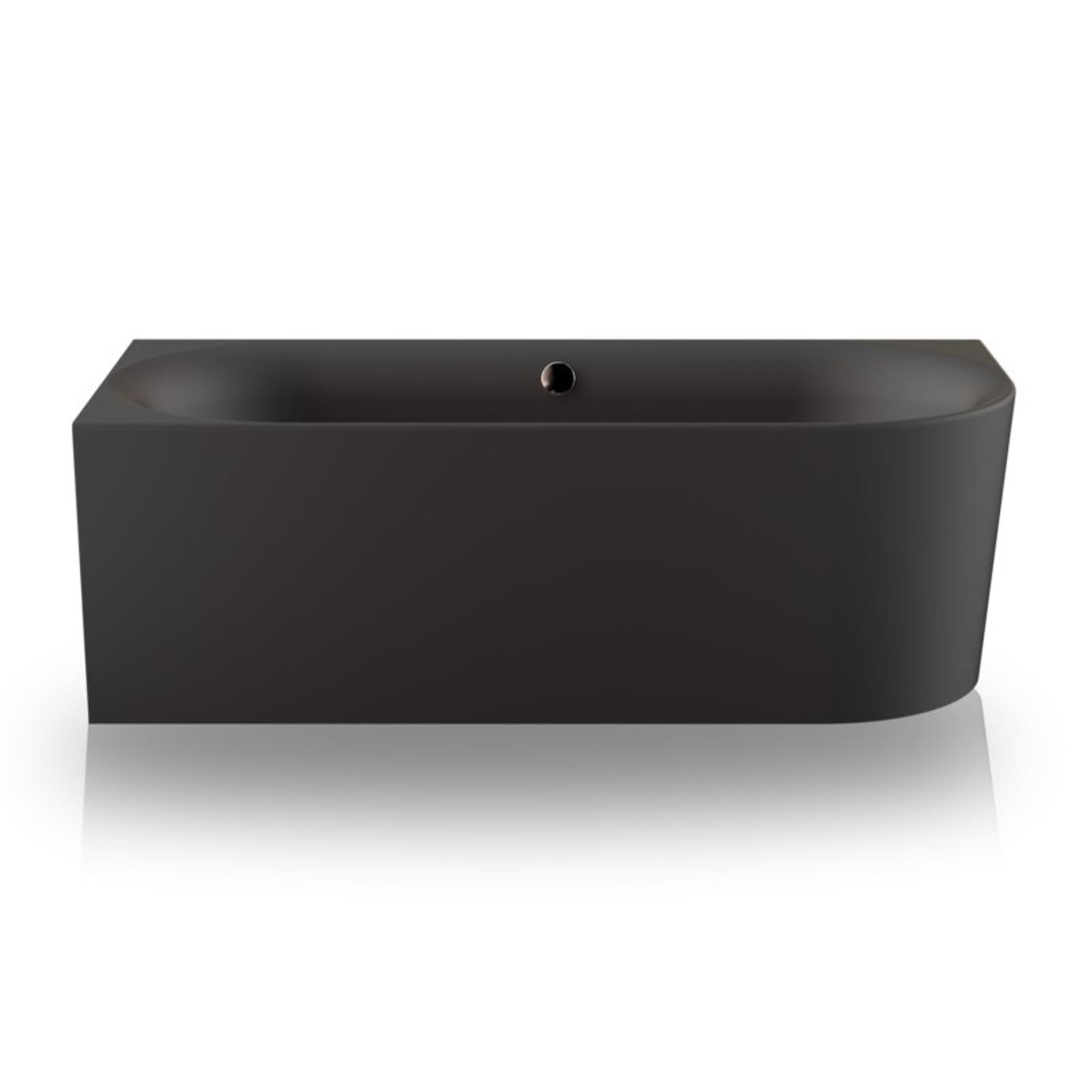 PliegerKansashoekbad acryl met waterinlaat links180x80x60cmmet poten | met af- en overloopgarnituur chroommat zwart