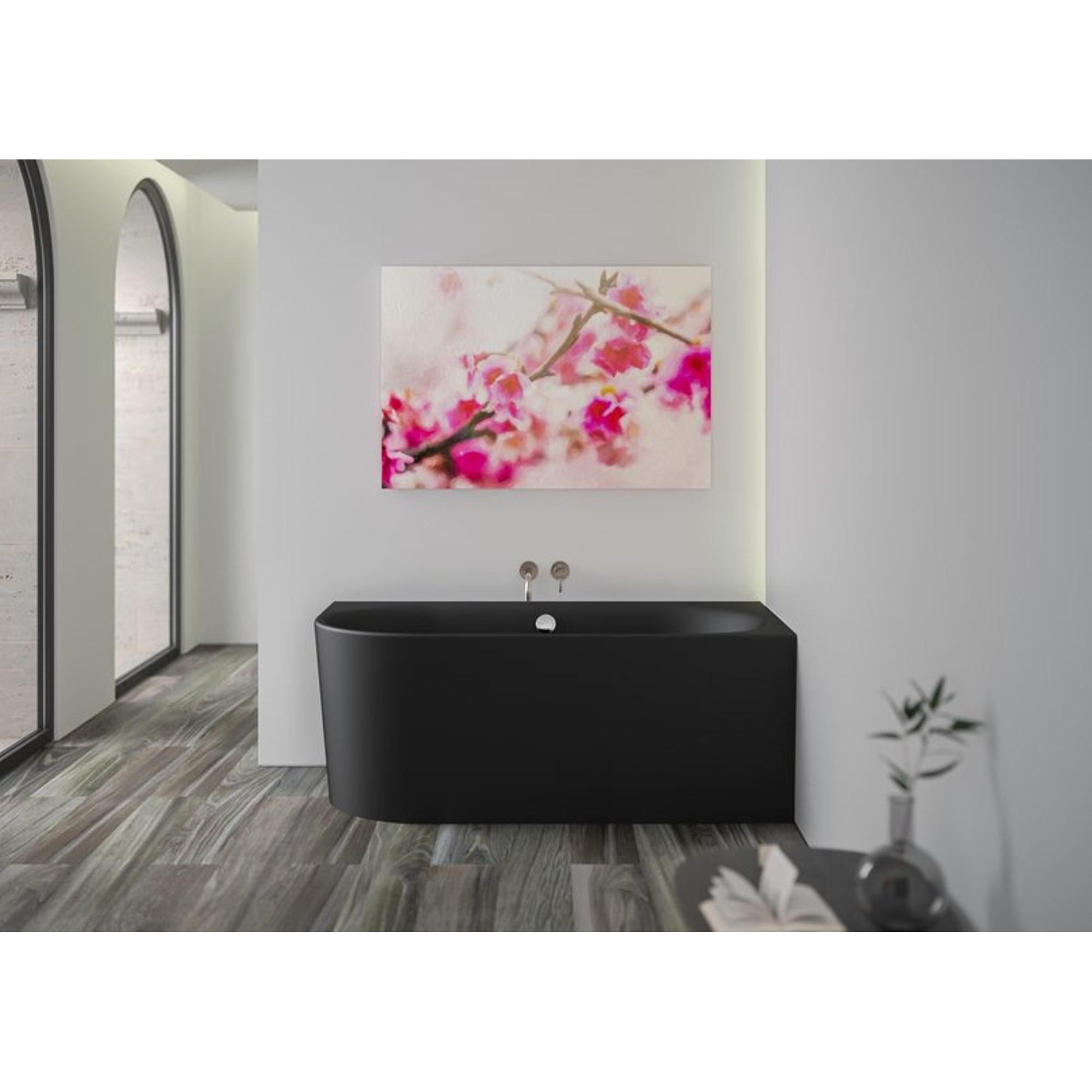 PliegerKansashoekbad acryl met waterinlaat rechts155x80x60cmmet poten | met af- en overloopgarnituur chroommat zwart