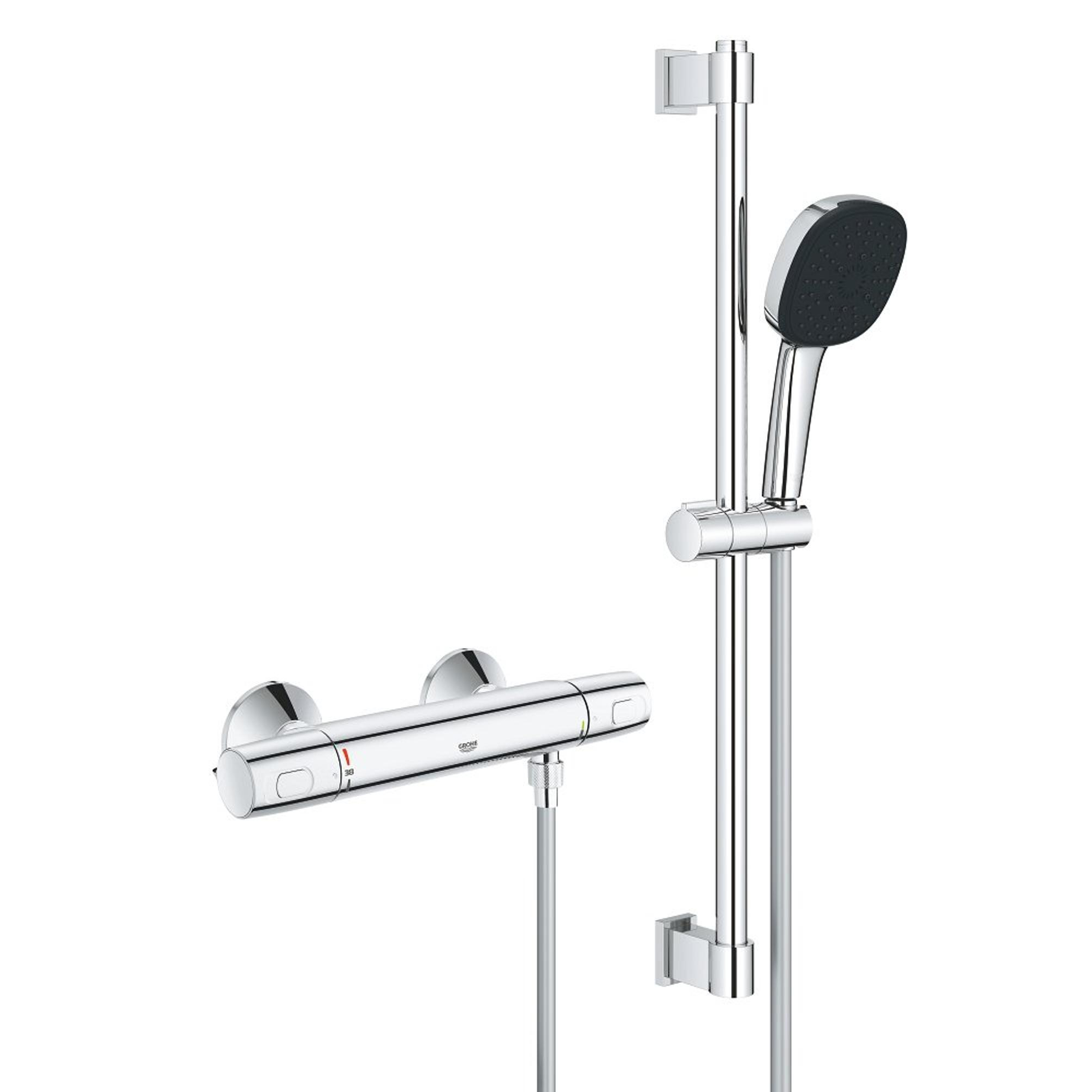 GROHE Precision Trend Ensemble de douche - robinet de douche thermostatique - avec ensemble barre de douche - 60cm - douchette à main carrée - 1 type de jet - flexible de douche lisse - chrome