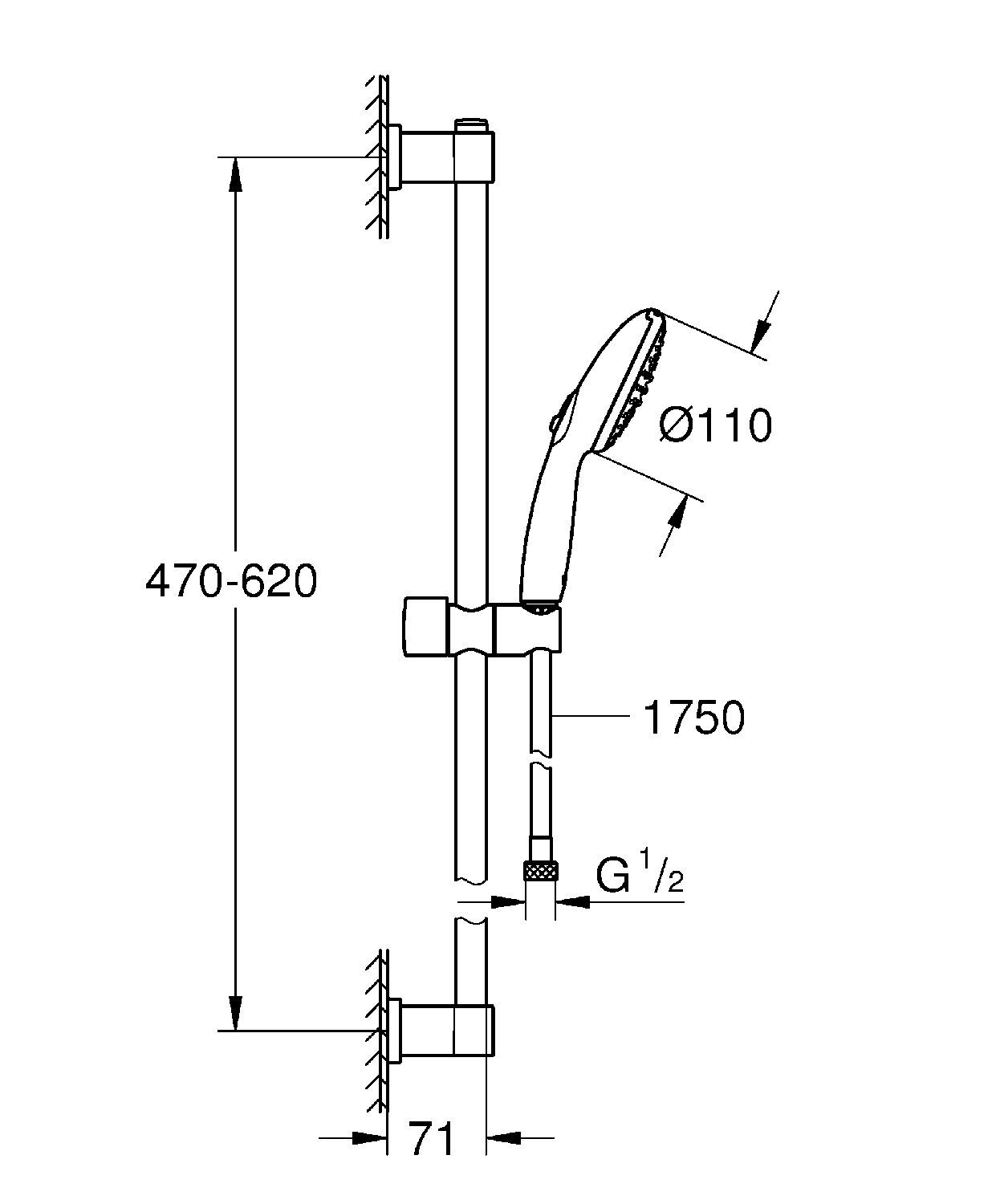 GROHE Vitalio Start 110 Ensemble barre de douche - 60cm - douchette ronde - 2 jets - flexible de douche lisse - chrome