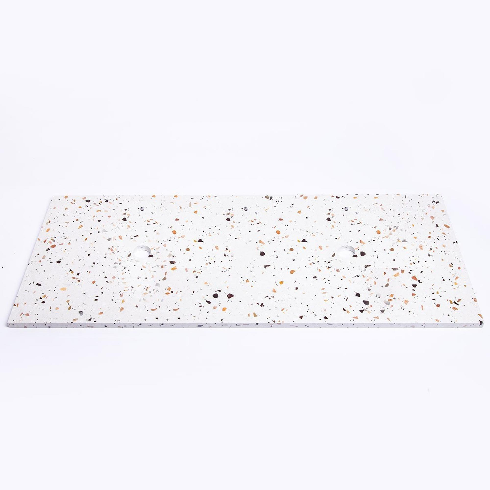 Saniclass Tops Plan de travail - 120x1.8x46cm - 2 évacuations - sans trous de robinet - Terrazzo crème