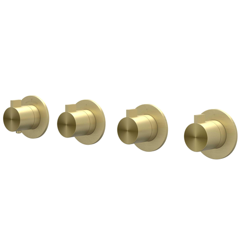 IVY Tribe Partie apparente mitigeur thermostatique encastré avec 3 robinets d’arrêt Symmetry avec rosaces rondes Inox 316 or mat brossé PVD