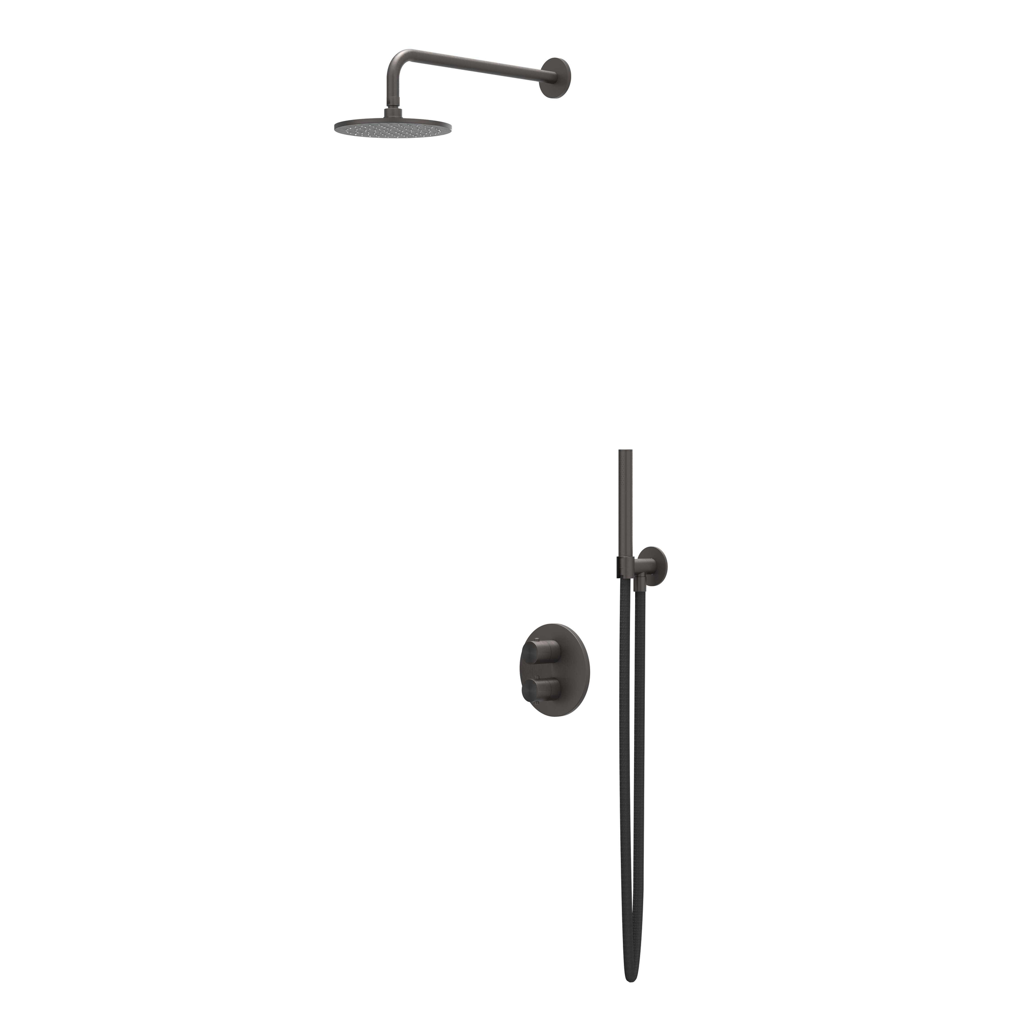 IVY Concord Ensemble de douche de tête - encastré - inverseur d'arrêt 2 voies - bras de plafond 20 cm - douche de tête medium ronde 25 cm - barre de douche avec sortie - flexible de douche 150 cm - douchette à main modèle barre - RVS316 - carbone noir bro