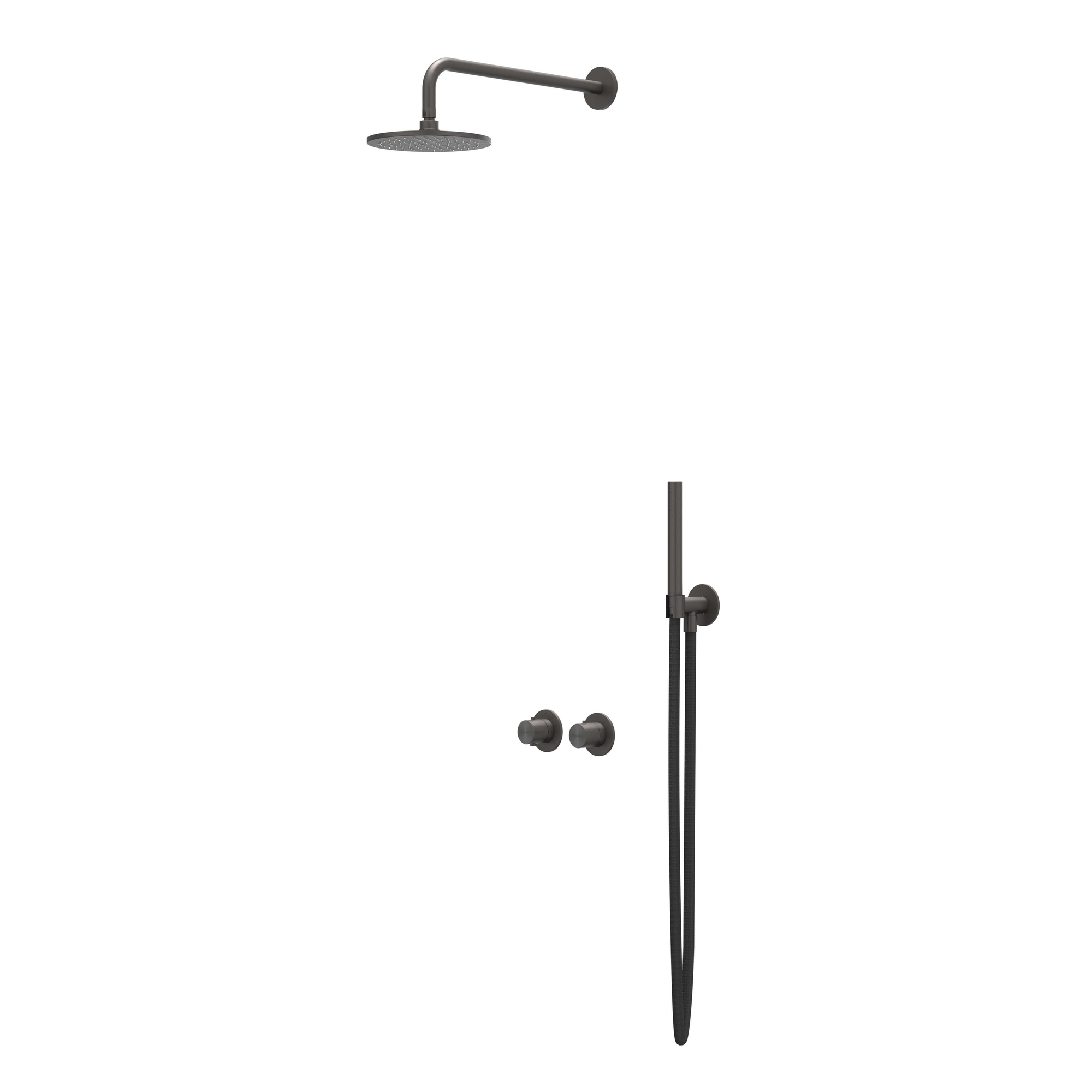 IVY Concord Ensemble de douche de tête - encastré - symmetry - inverseur d'arrêt 2 voies - bras mural 40 cm - douche de tête medium 25 cm - barre de douche avec sortie - flexible de douche 150 cm - douchette bâton - RVS316 - noir carbone brossé PVD
