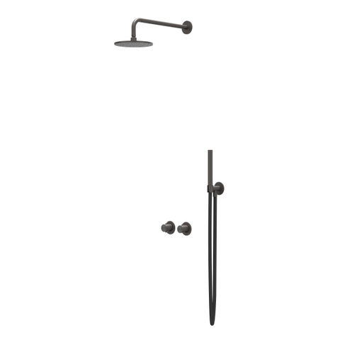 IVY Concord Ensemble de douche de tête - encastré - symmetry - inverseur d'arrêt 2 voies - bras mural 40 cm - douche de tête medium 30 cm - support avec sortie - flexible de douche 150 cm - douchette barre - ACIER INOXYDABLE 316 - noir carbone brossé PVD