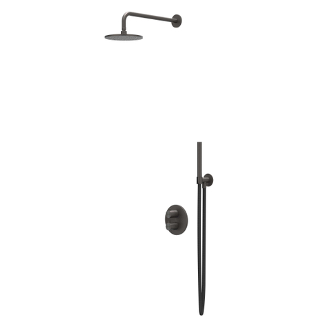 IVY Tribe Ensemble de douche pluie - encastré - inverseur d'arrêt 2 voies - bras de plafond 30 cm - pomme de douche principale medium ronde 20 cm - barre de douche avec sortie - flexible de douche 150 cm - douchette à main modèle barre - RVS316 - carbone