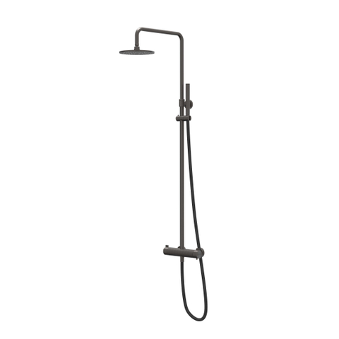 IVY Tribe Ensemble de douche de tête 1 montage apparent - pomme de douche principale medium 25 cm - douchette bâton INOX 316 noir carbone brossé PVD