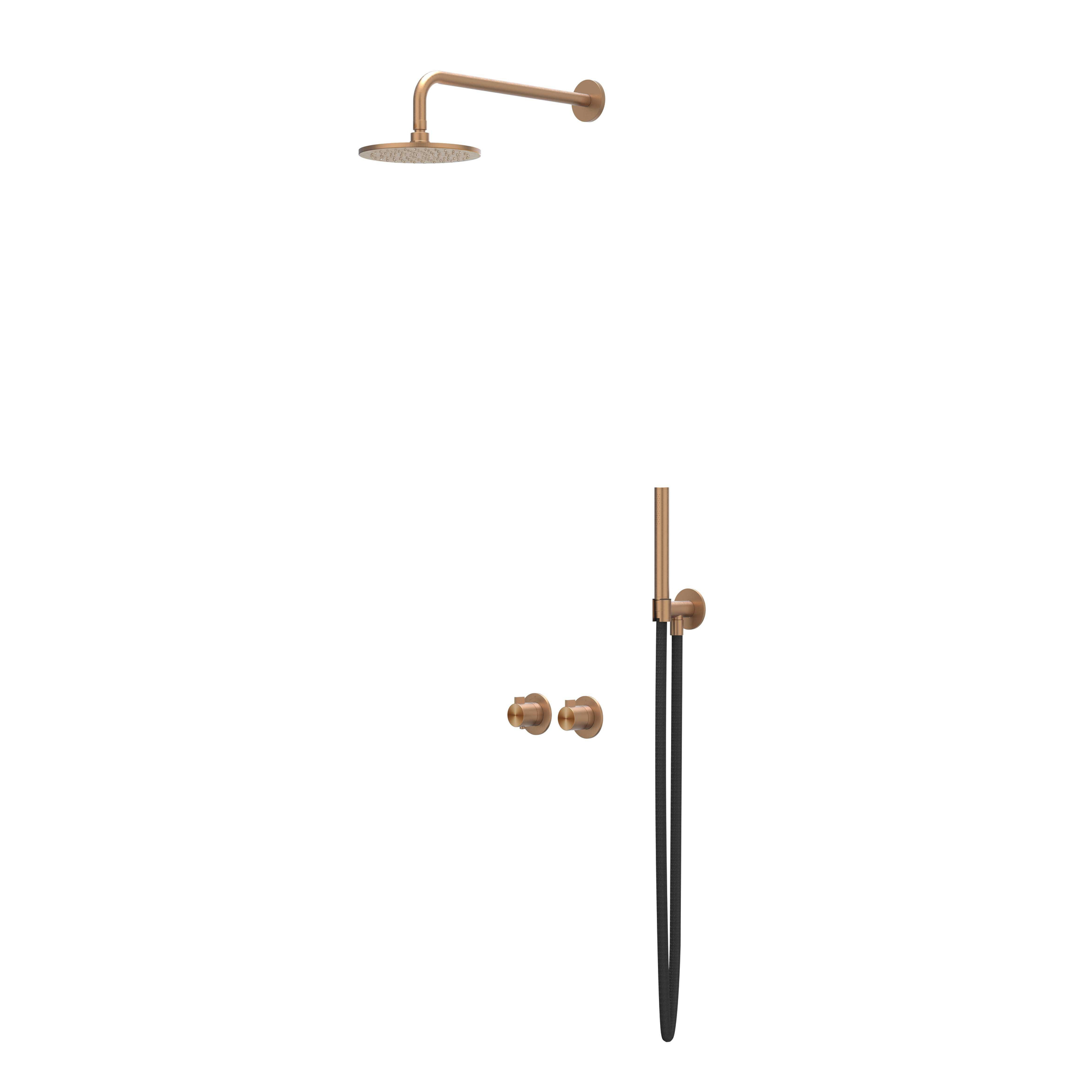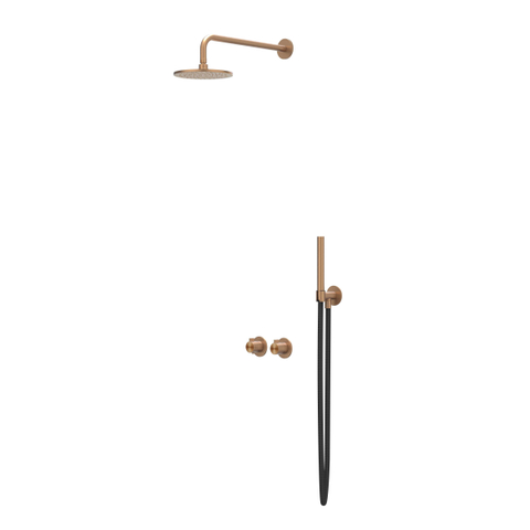 IVY Tribe Ensemble de douche pluie 3 encastré symmetry avec inverseur-arrêt 2 voies - bras de douche mural 40 cm - pomme de douche principale medium 25 cm - support avec sortie - flexible de douche 150 cm - douchette à main bâton ACIER INOXYDABLE 316 cuivre brossé mat PVD