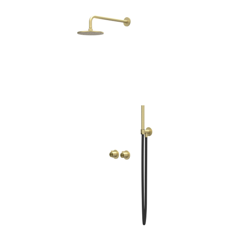 IVY Tribe Ensemble de douche de tête - encastré - symmetry - inverseur d'arrêt 2 voies - bras de plafond 20 cm - pomme de douche de tête medium 20 cm - barre de douche avec sortie - flexible de douche 150 cm - douchette à main bâton - RVS316 - or brossé m SW1032214