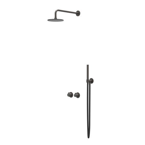 IVY Tribe Ensemble de douche pluie - encastré - symmetry - inverseur arrêt 2 voies - bras de plafond 30 cm - pomme de douche principale medium 25 cm - support avec sortie - flexible de douche 150 cm - douchette stick - RVS316 - carbone noir brossé PVD
