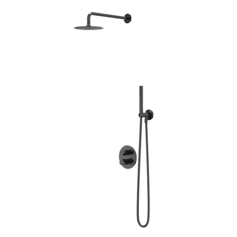 IVY Bond Ensemble de douche à effet pluie 2 encastré avec inverseur-arrêt 2 voies - bras de plafond 30 cm - pomme de douche principale ronde medium 30 cm - barre de douche avec sortie - flexible de douche 150 cm - douchette à main satin spray Chrome noir PVD
