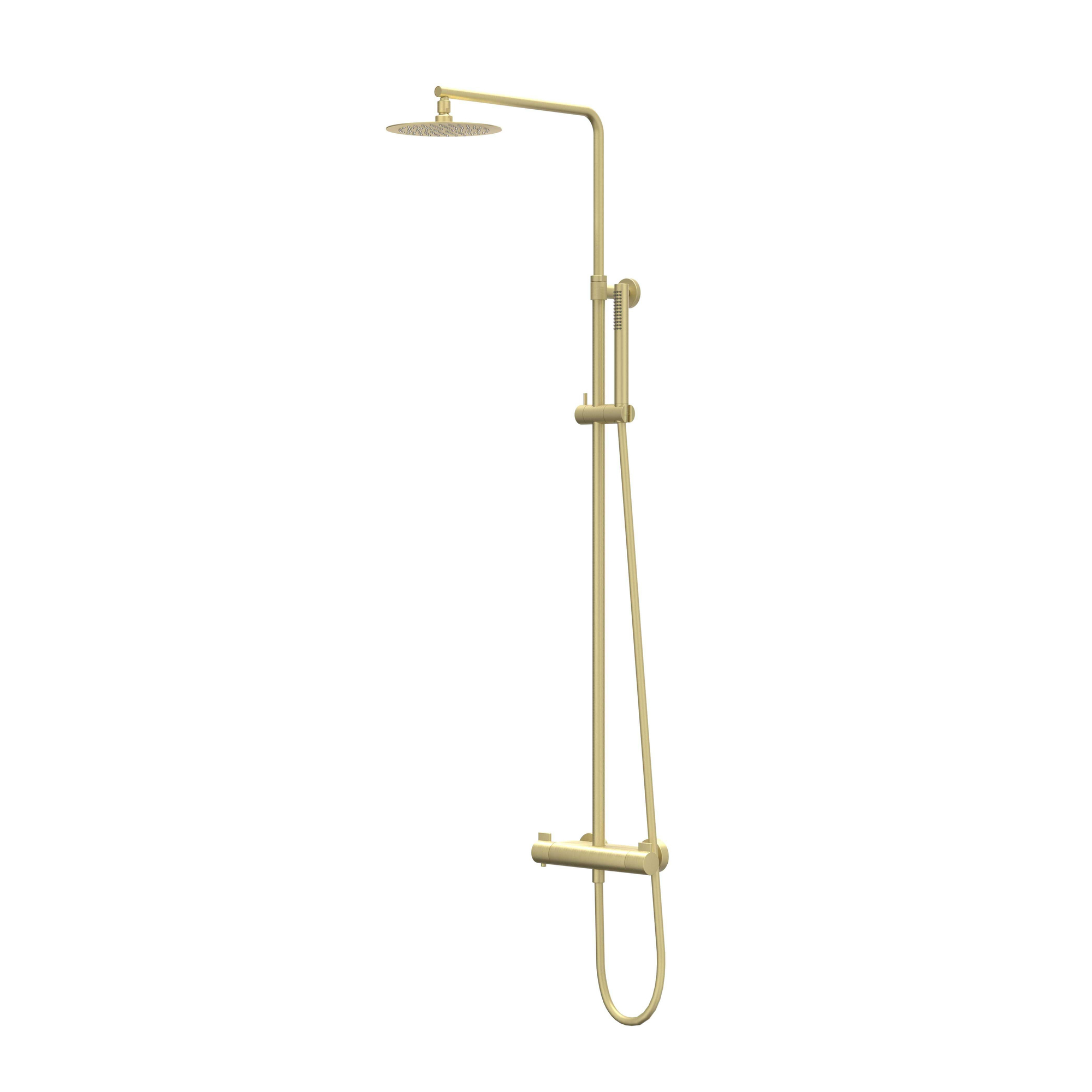 IVY Pact Ensemble de douche à effet pluie - apparent - tête de douche medium 25 cm - douchette barre - or mat brossé PVD