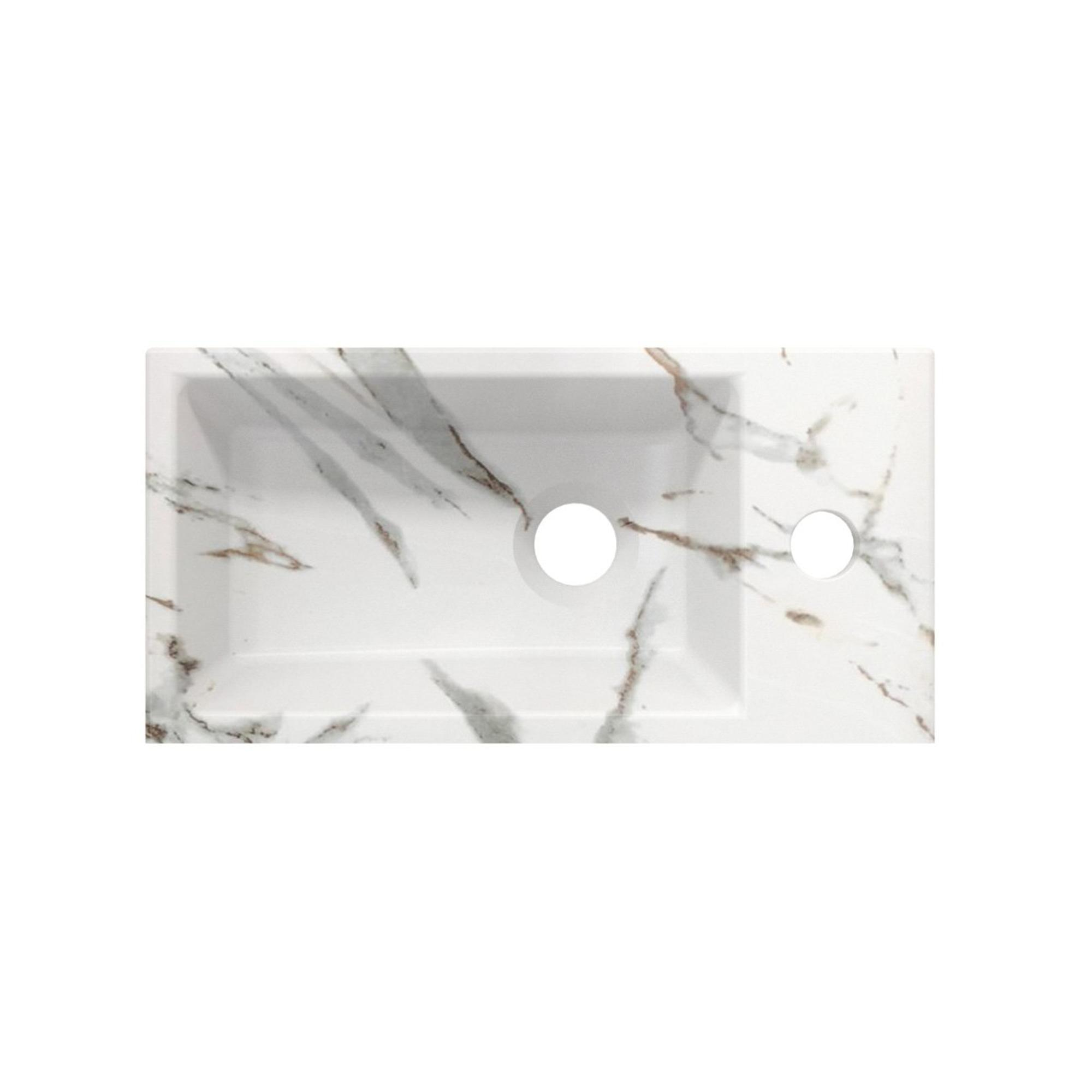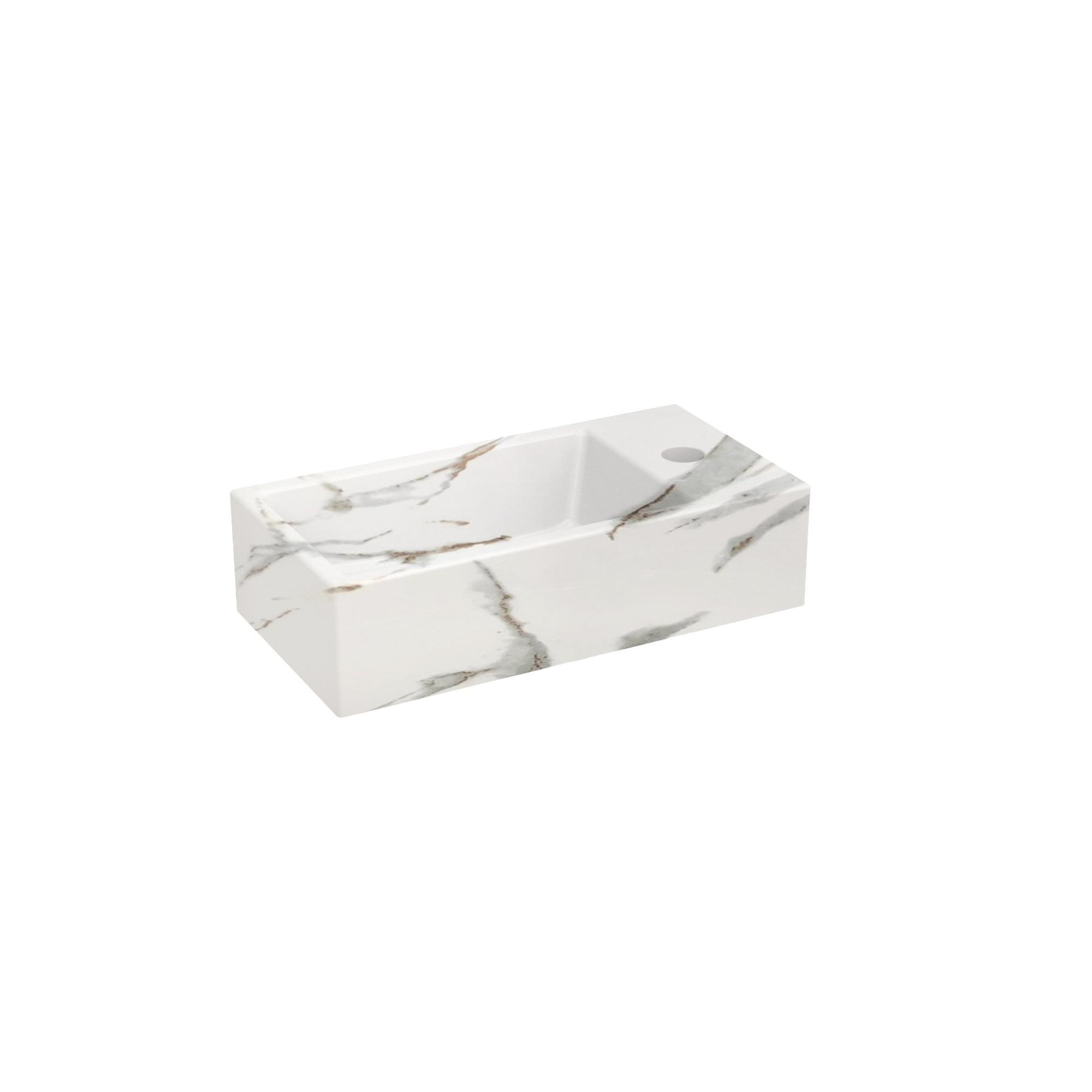 Riho Livit Tiny Lavabo lave-mains - 1 trou de robinet à droite - 41x20.5x10.5cm - céramique - marbre blanc