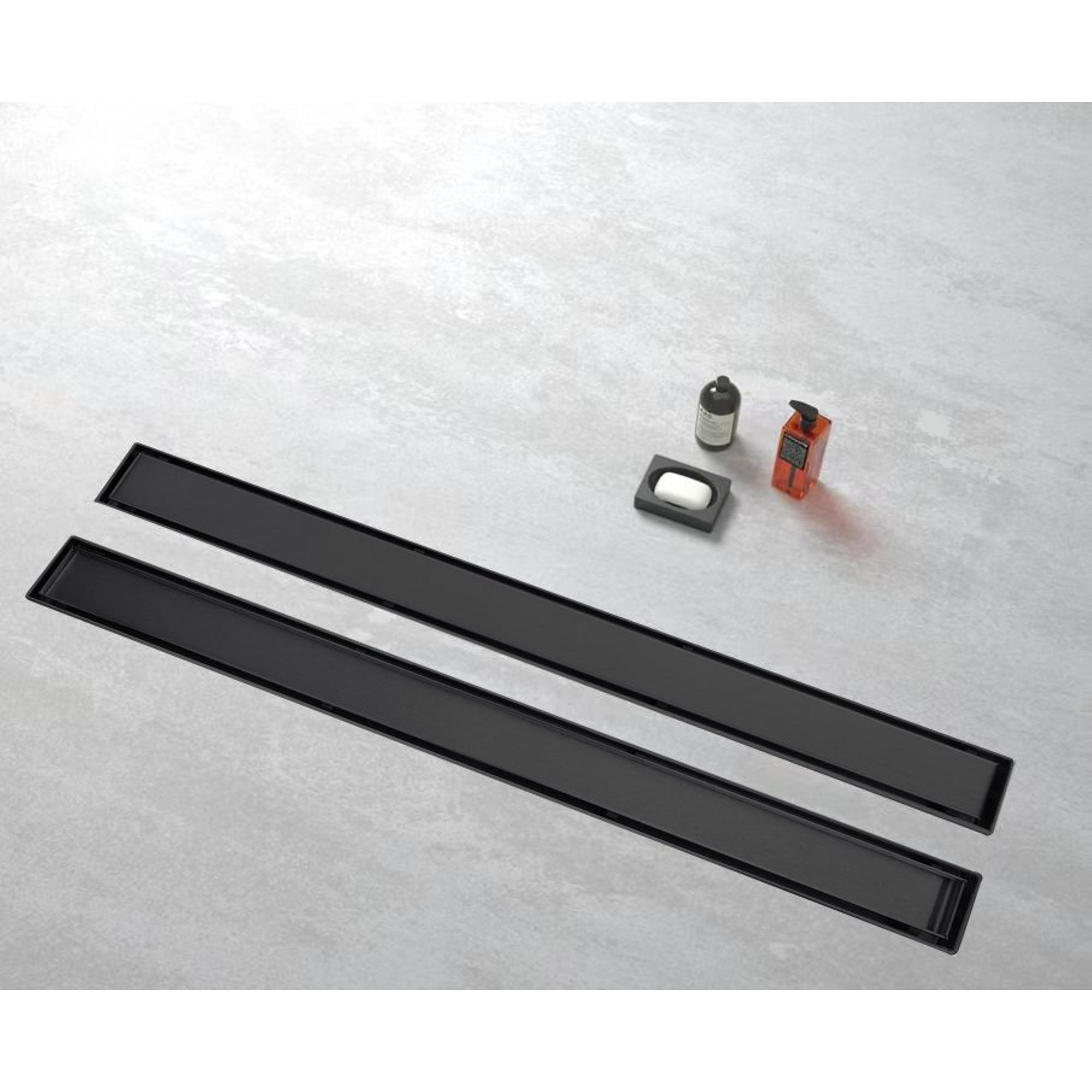 Avec cette élégante grille de caniveau de douche, vous donnez en une seule fois une mise à niveau luxueuse à votre douche à l'italienne. Le design fin noir mat s'intègre parfaitement dans les salles de bains modernes et industrielles, mais se marie tout aussi bien avec un style chaleureux d'hôtel chic. Grâce à la longueur de 100 cm, elle est idéale pour les douches spacieuses ou un sol carrelé continu et épuré. Comme la grille peut être combinée avec pratiquement n'importe quel carrelage, vous pouvez adapter la finition exactement à la conception de votre salle de bains. Si vous recherchez une solution à l'aspect minimaliste, avec une bonne évacuation de l'eau et qui reste belle même après des années d'utilisation intensive, cette version est un choix particulièrement judicieux.
