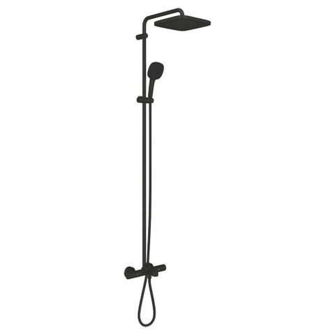 Grohe Tempesta 250 Cube Douche pluie - 164.1cm - pomme de douche 25cm - douchette carrée - 2 jets - thermostatique - noir mat