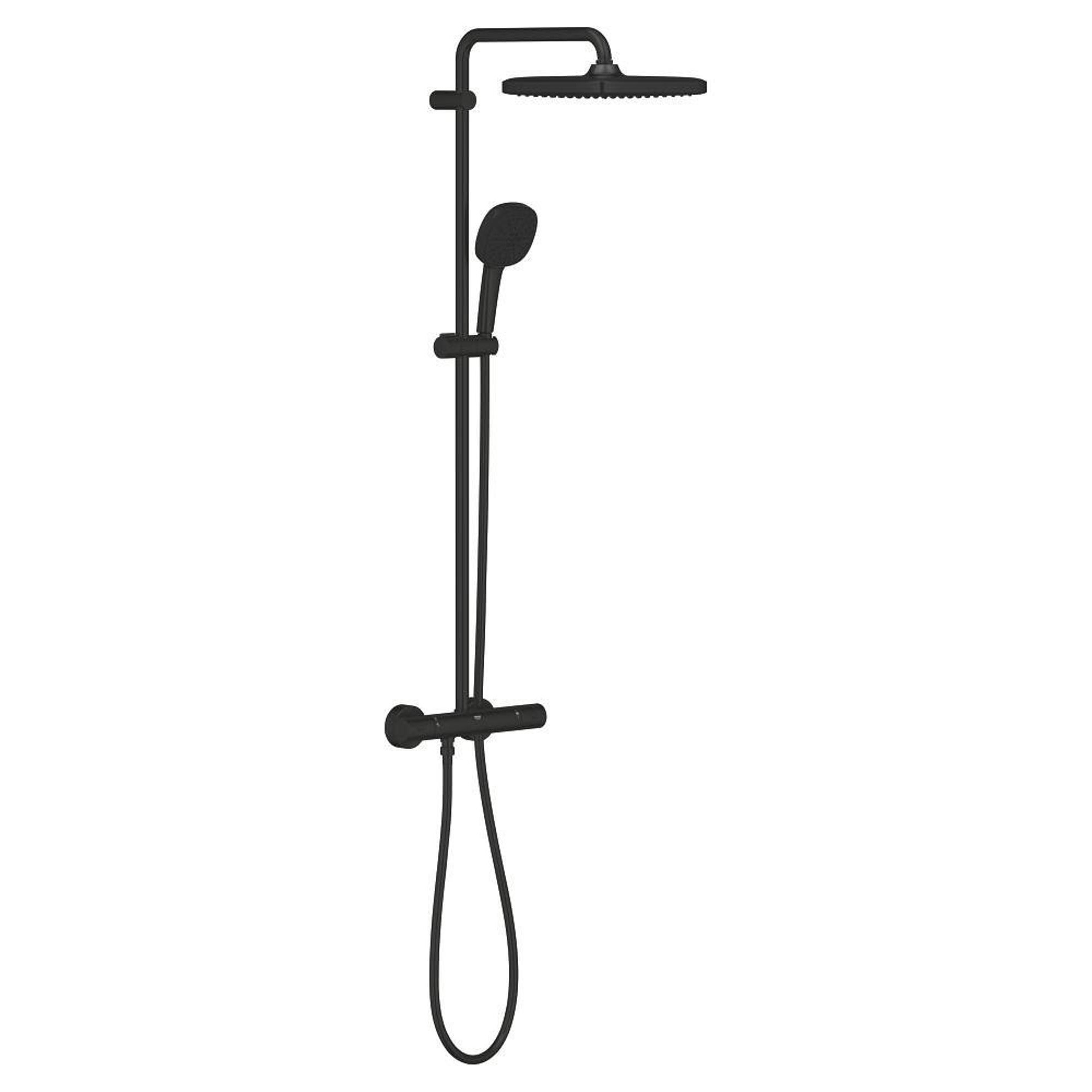 Sécurité, durabilité, style et performances exceptionnelles font du système de douche thermostatique GROHE Tempesta Cube 250 en magnifique Matte Black (noir mat) le choix parfait