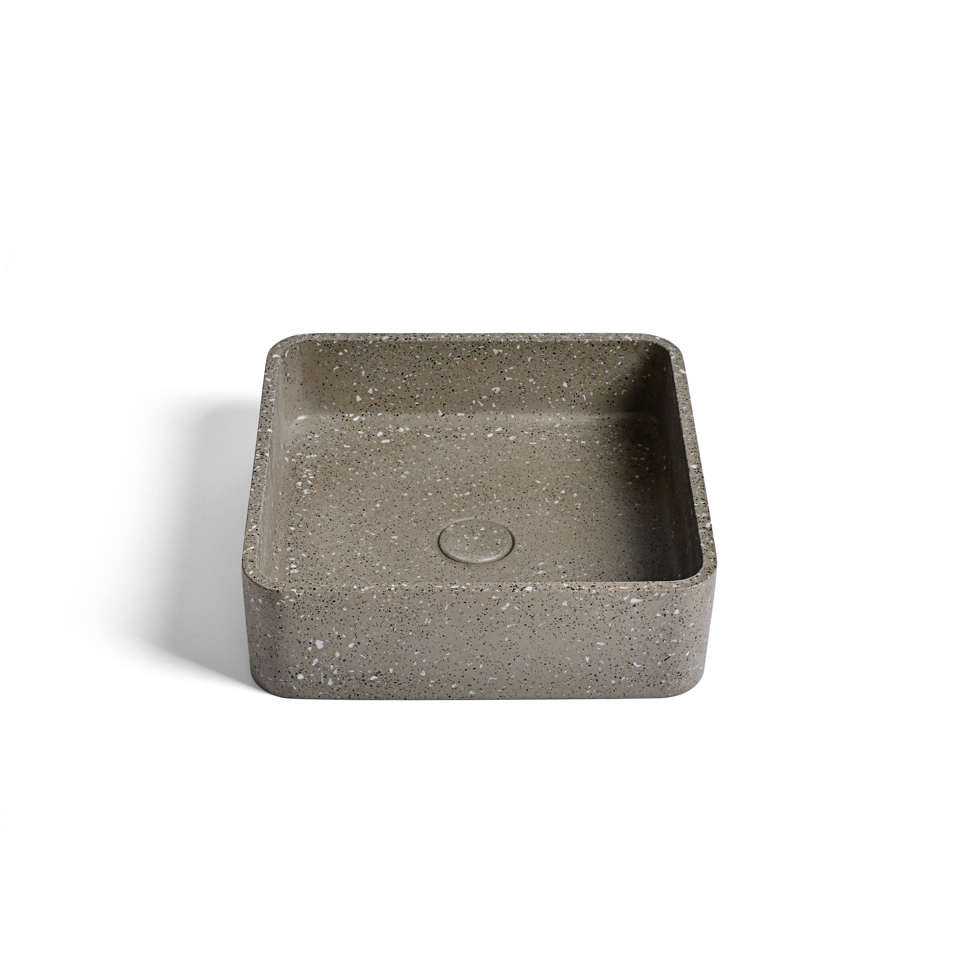 - Variante de couleur terrazzo E10 : aspect béton unique et chaleureux qui se combine facilement avec de nombreuses couleurs de carrelage et de robinetterie.