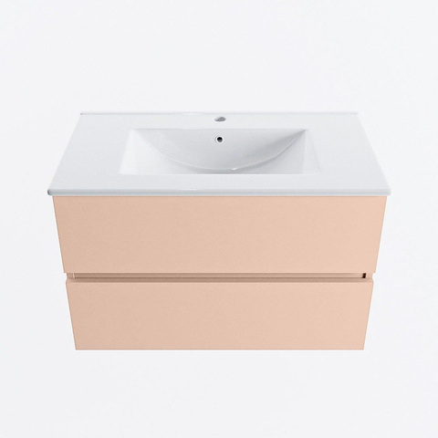 MONDIAZ VICA Ensemble meuble de salle de bains - 80cm - sous-meuble rosee - 2 tiroirs - lavabo denia central - 1 trou de robinet - version haute 60cm - blanc brillant