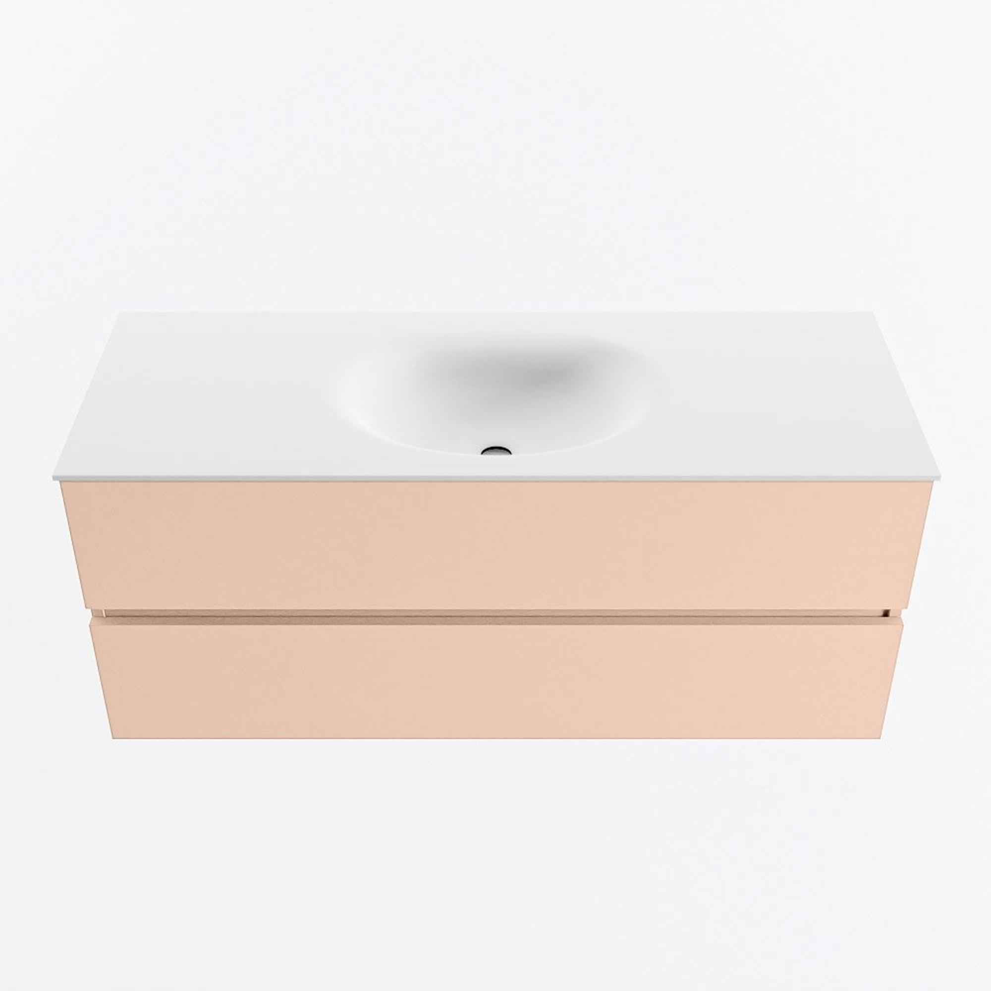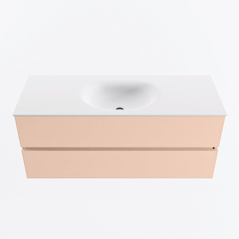 MONDIAZ VICA Ensemble meuble de salle de bains - 120cm - meuble bas rosee - 2 tiroirs - lavabo moon central - sans trous de robinet - version haute 60cm - talc