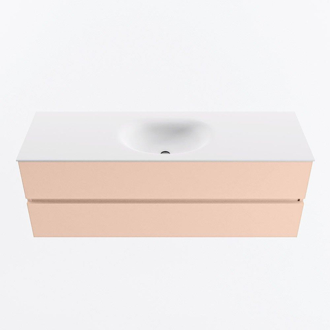 MONDIAZ VICA Ensemble meuble de salle de bains - 140cm - meuble bas rosee - 2 tiroirs - lavabo moon central - sans trous de robinet - version haute 60cm - talc